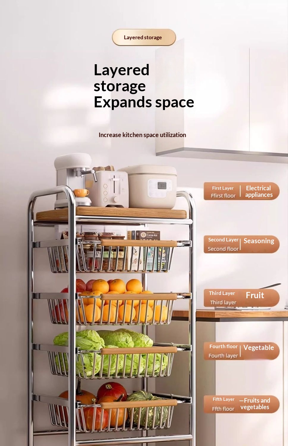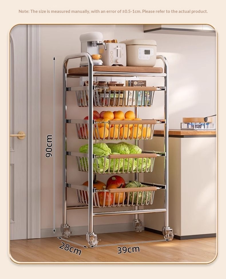Multi-tier Pull-out Vegetable And Snack Basket Organizer With A Mobile Cart Frame