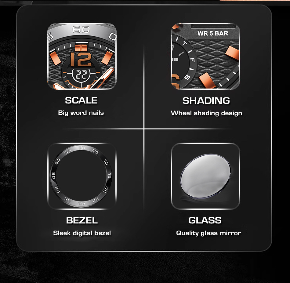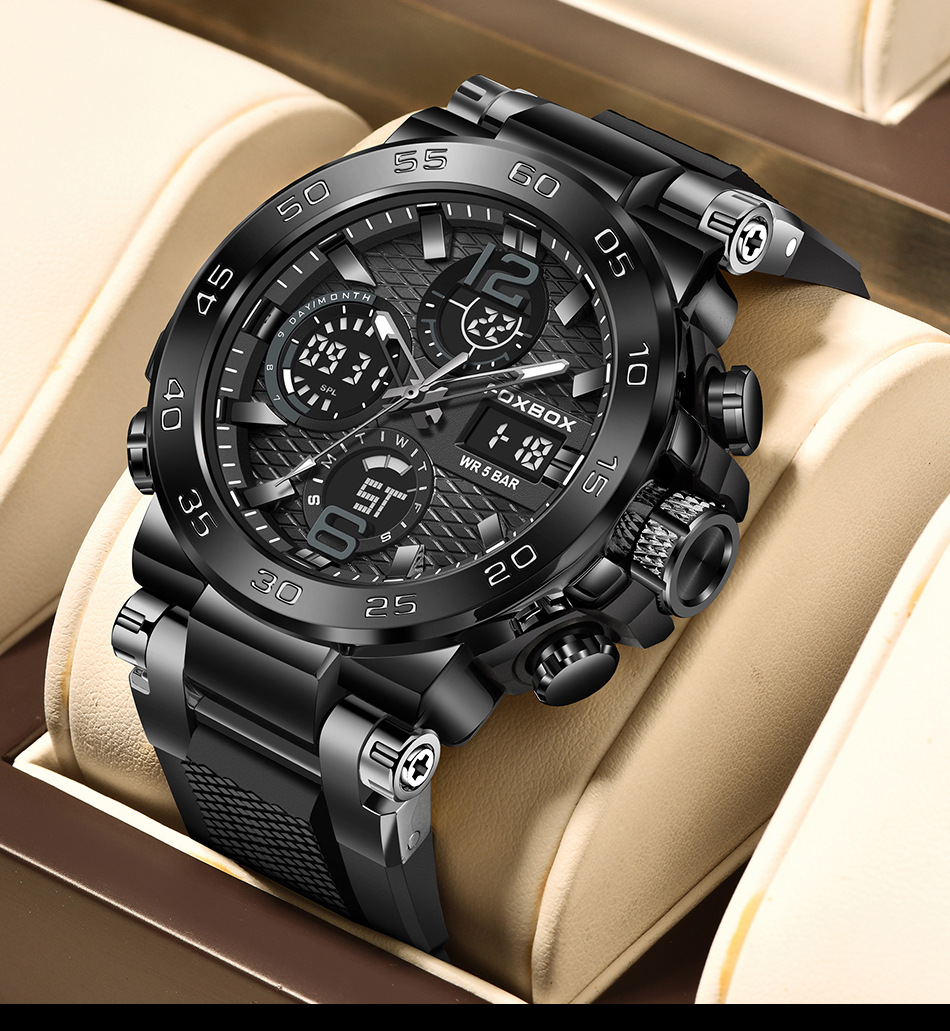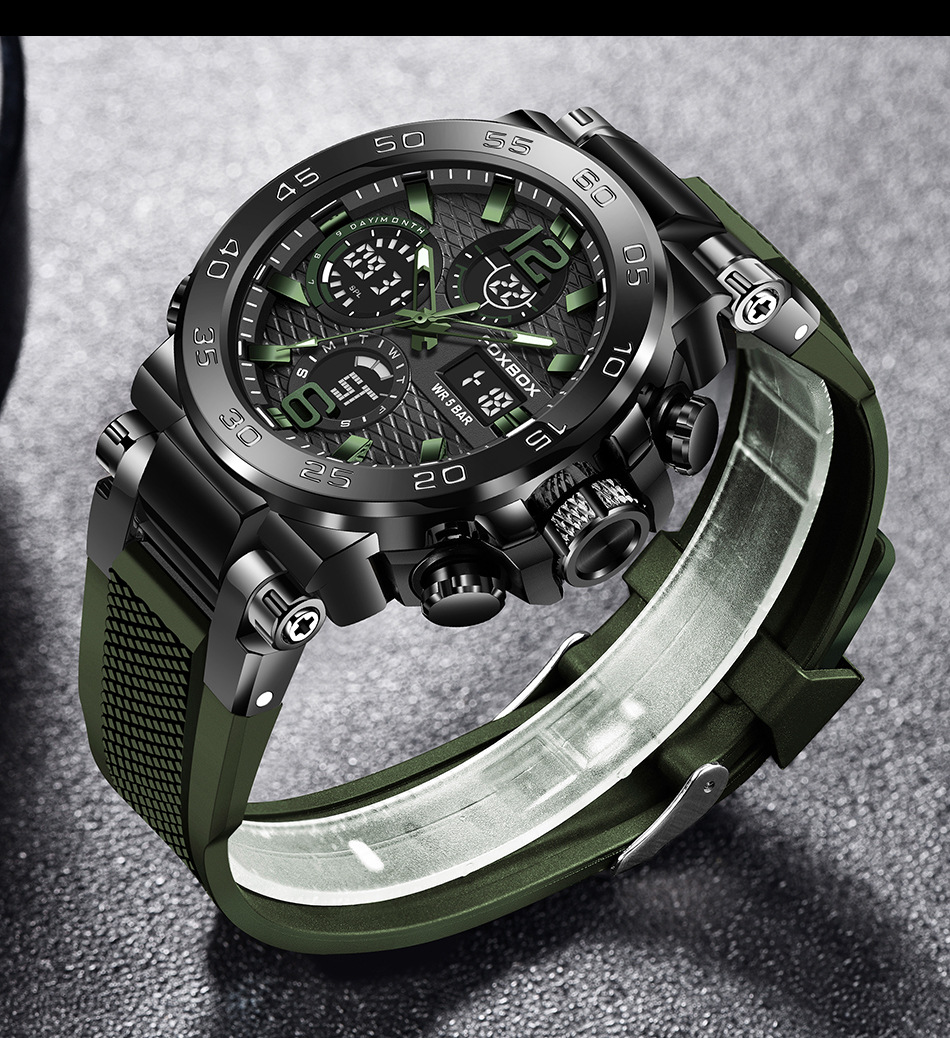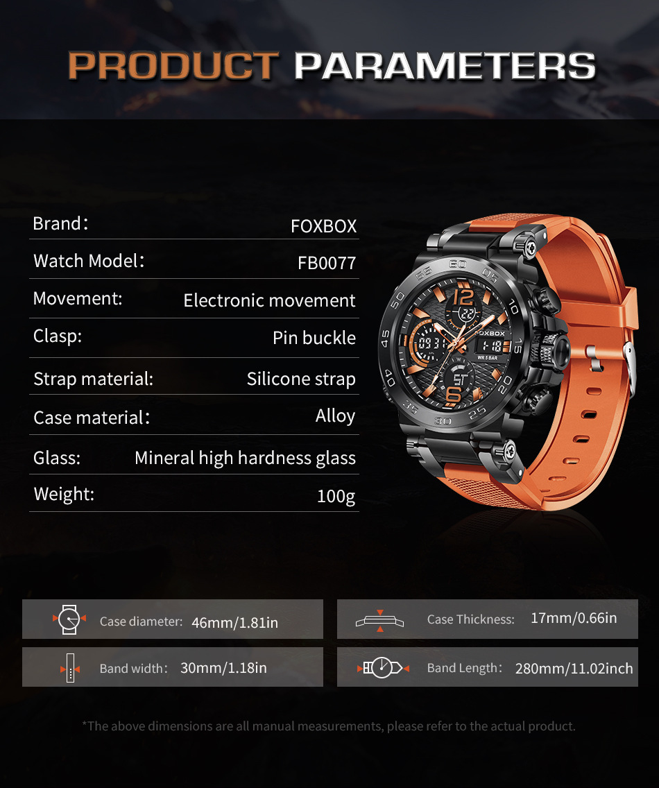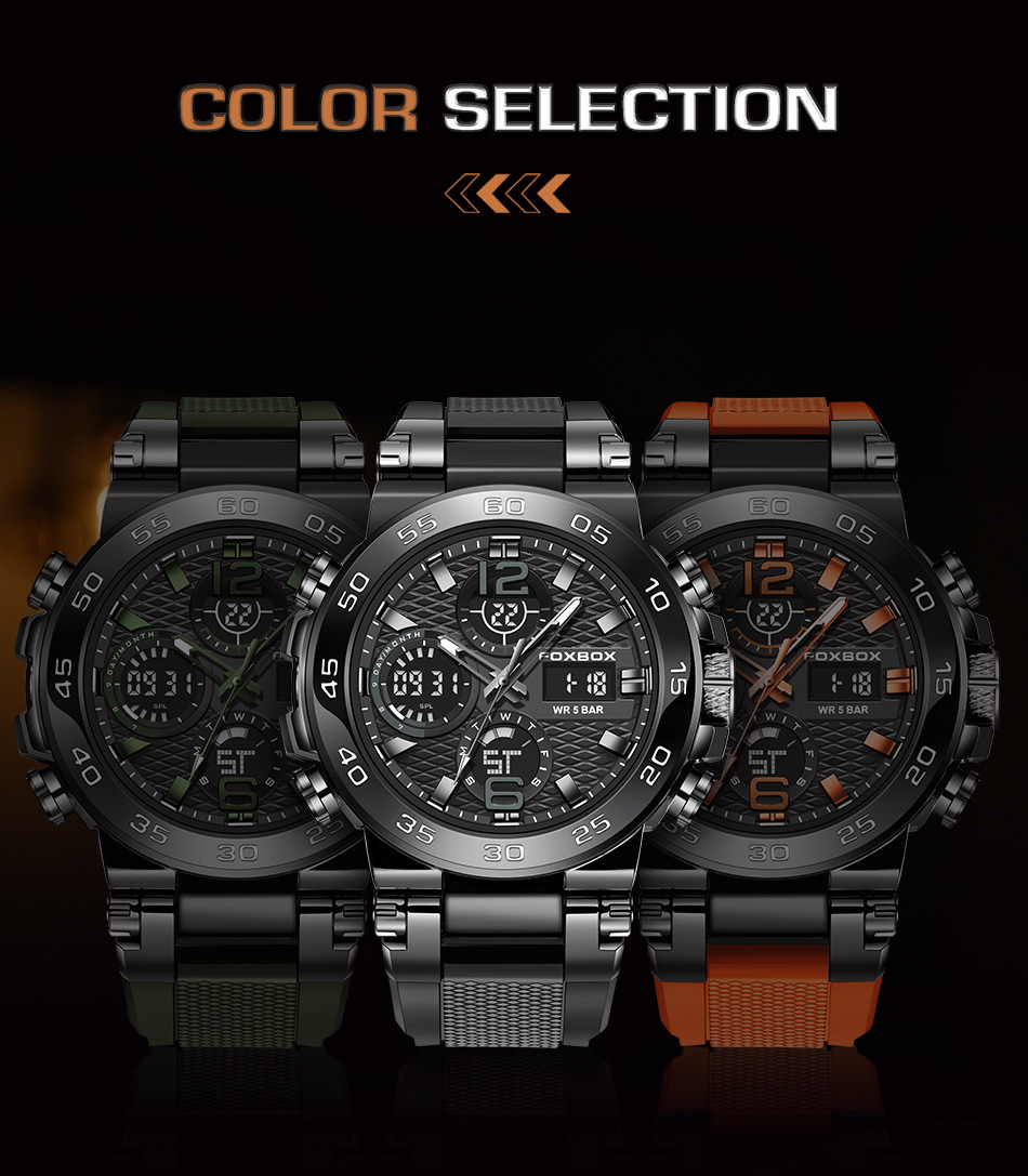 Product information:Colors: All Black, Black-Orange, Black-Green, Gold-Green, Silver-Blue, Camo Rose-Green, Camo Gold-Green, Camo All Black, Camo Silver-BlackTarget Audience: MenWatch Model:FB0077Move...