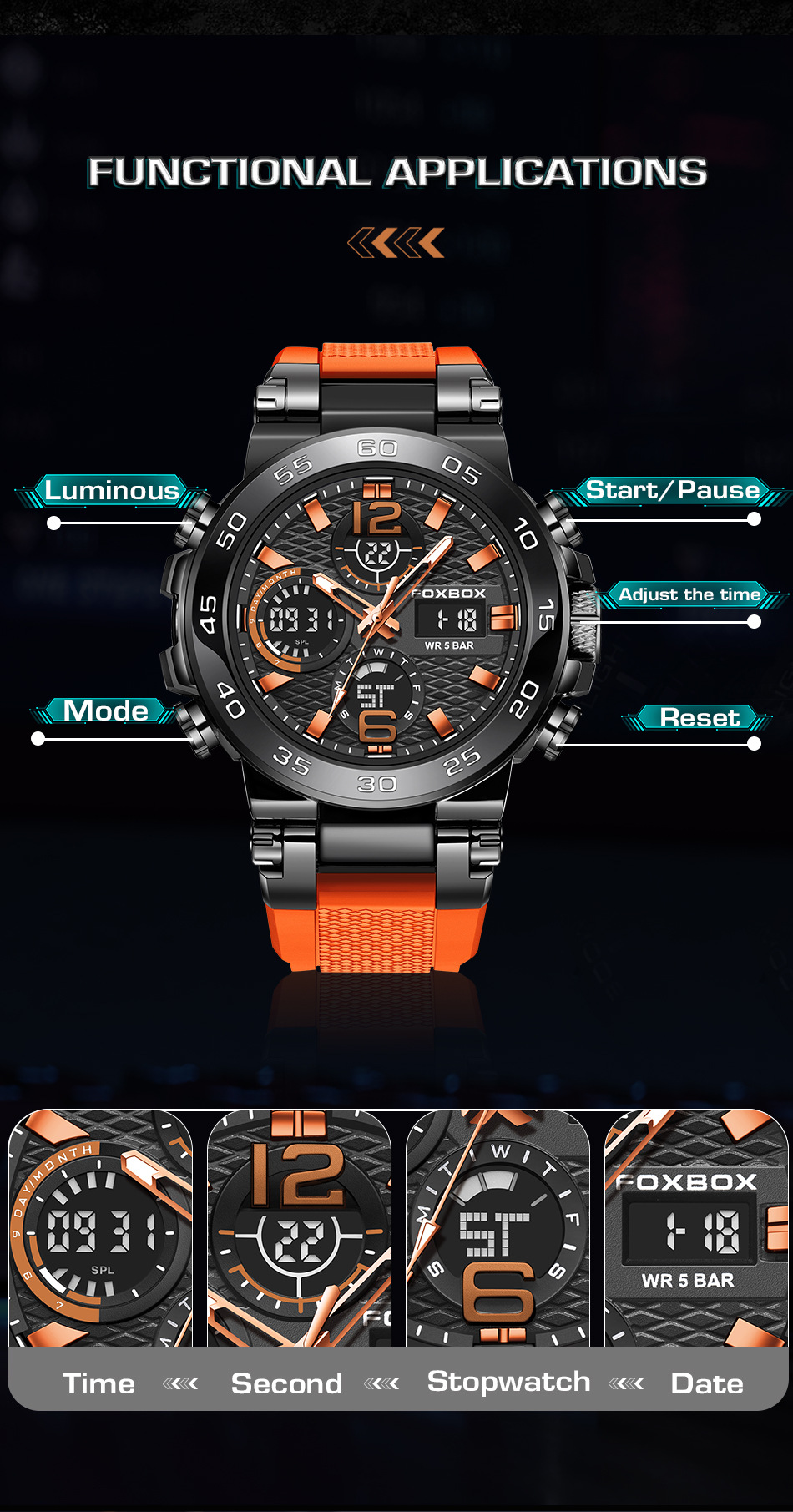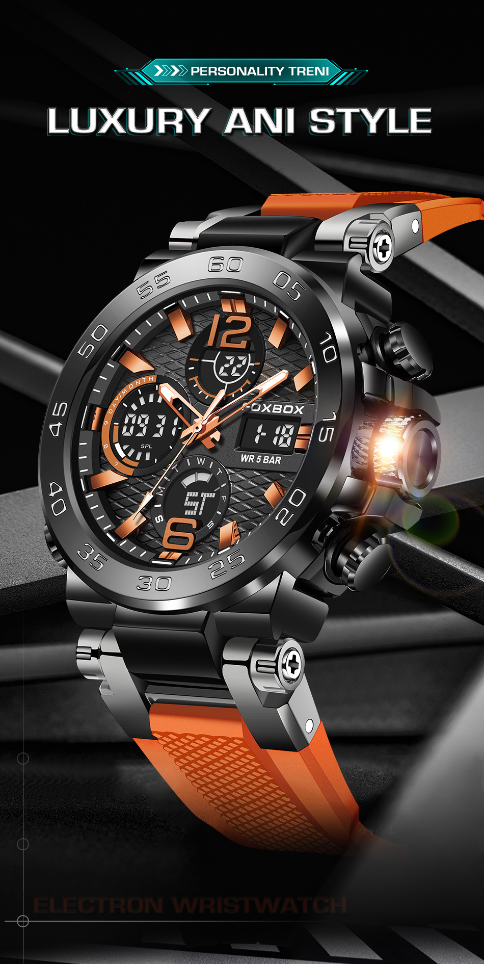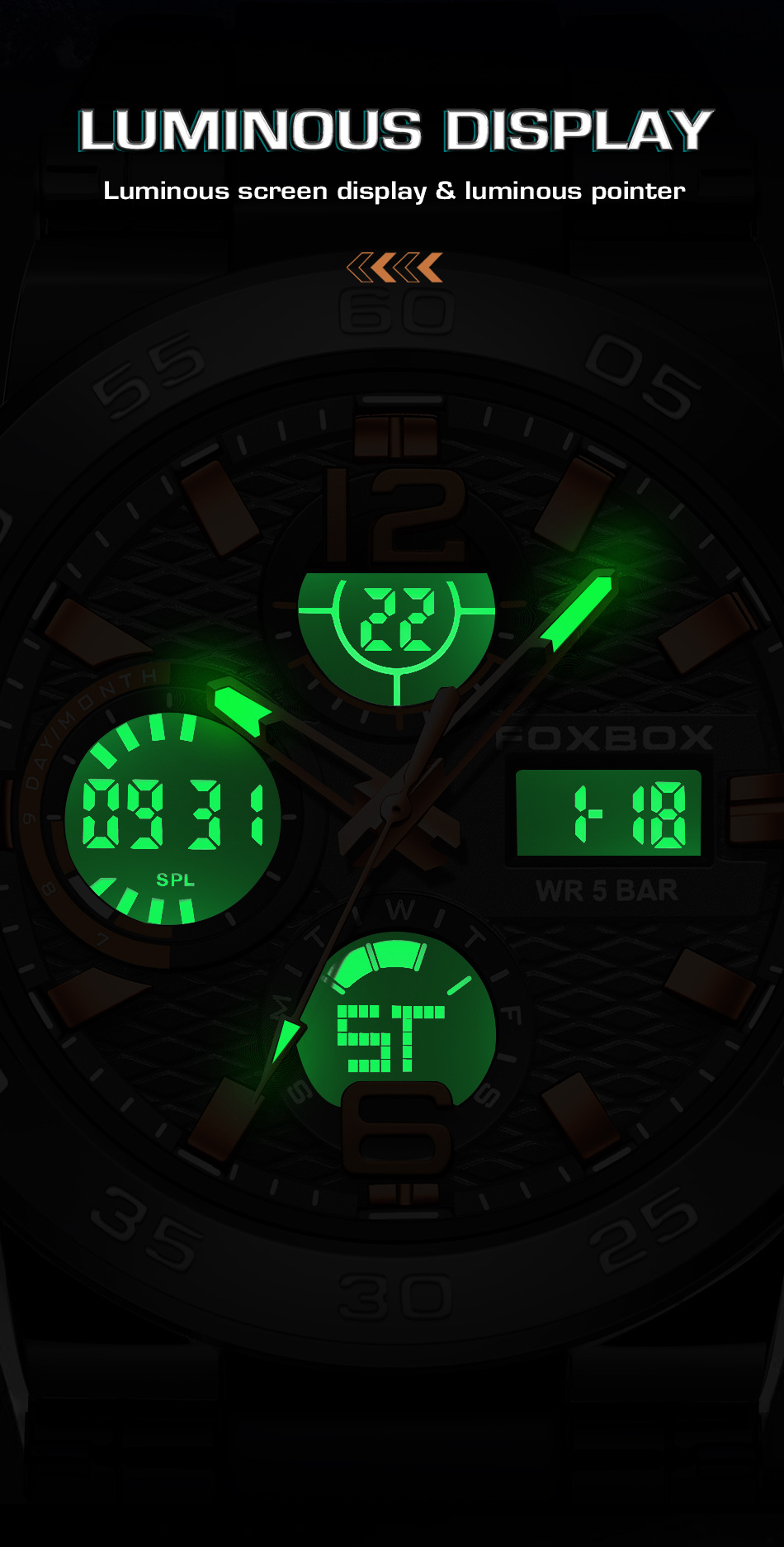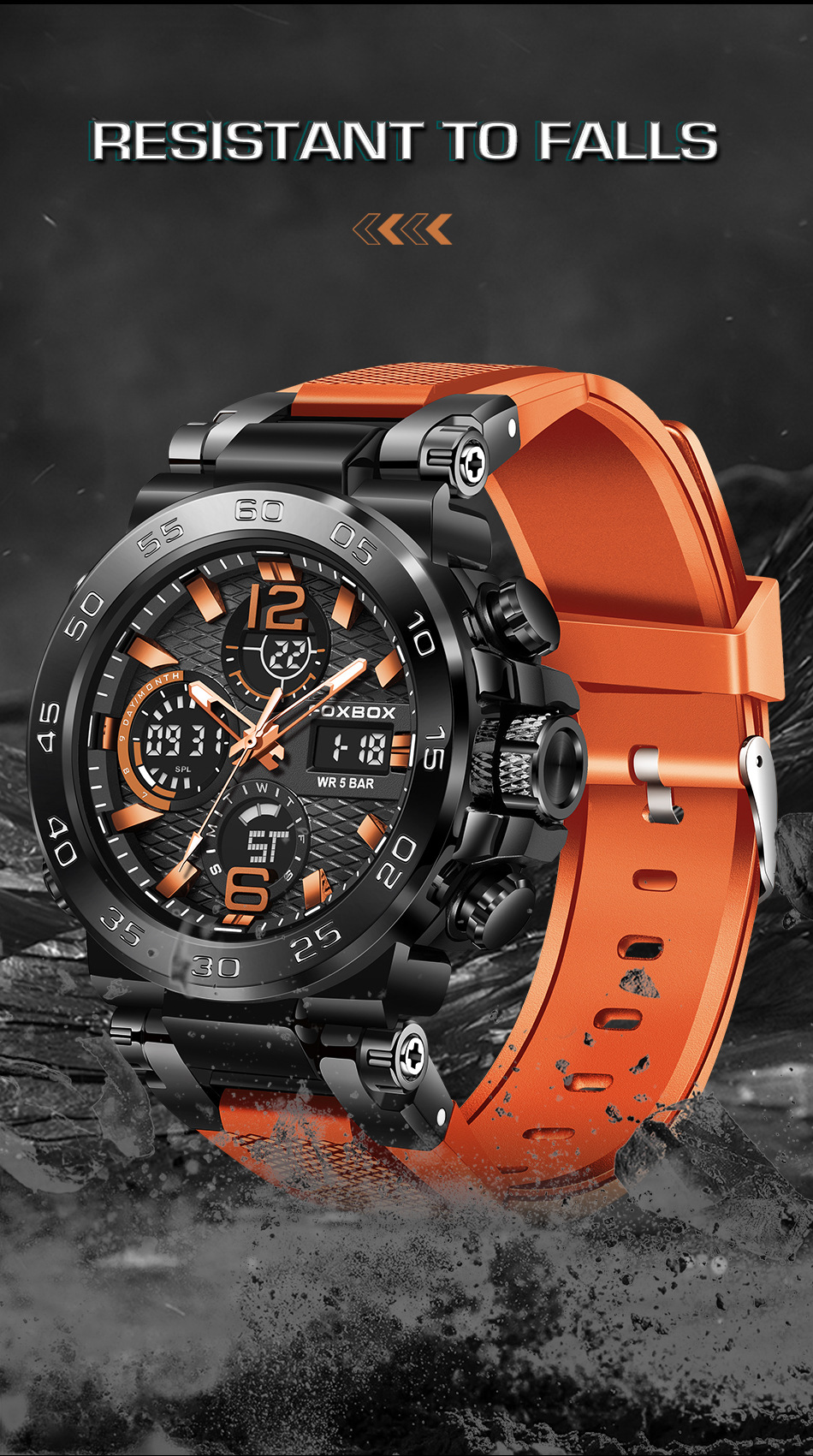 Product information:Colors: All Black, Black-Orange, Black-Green, Gold-Green, Silver-Blue, Camo Rose-Green, Camo Gold-Green, Camo All Black, Camo Silver-BlackTarget Audience: MenWatch Model:FB0077Move...