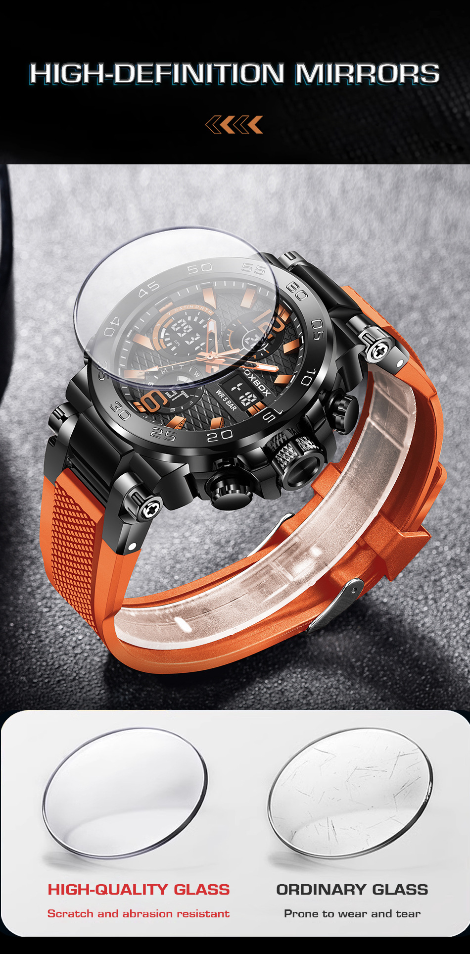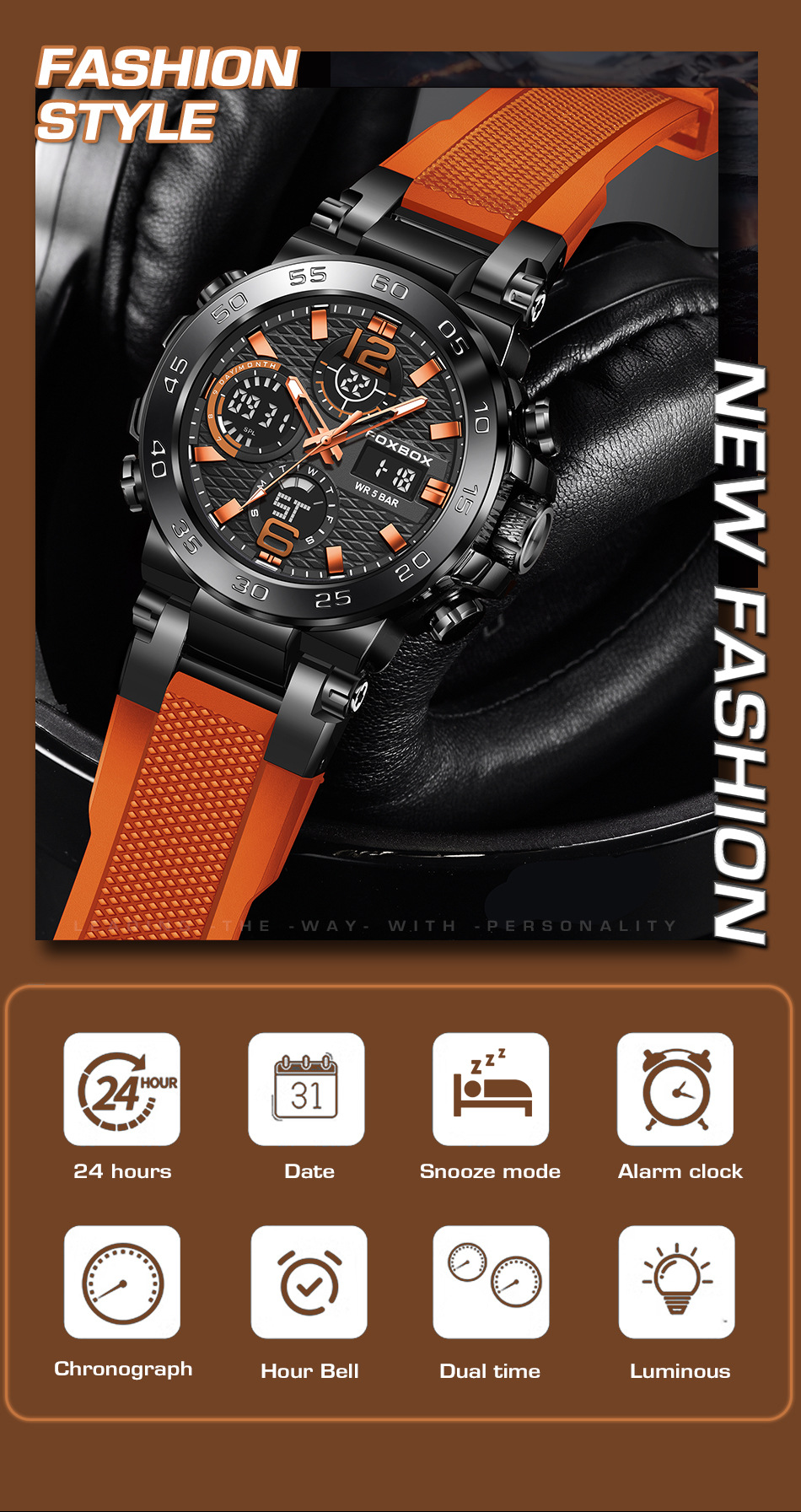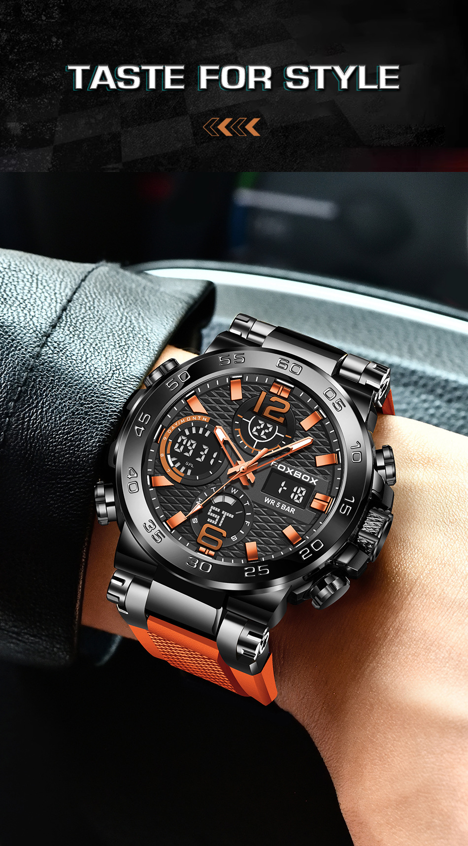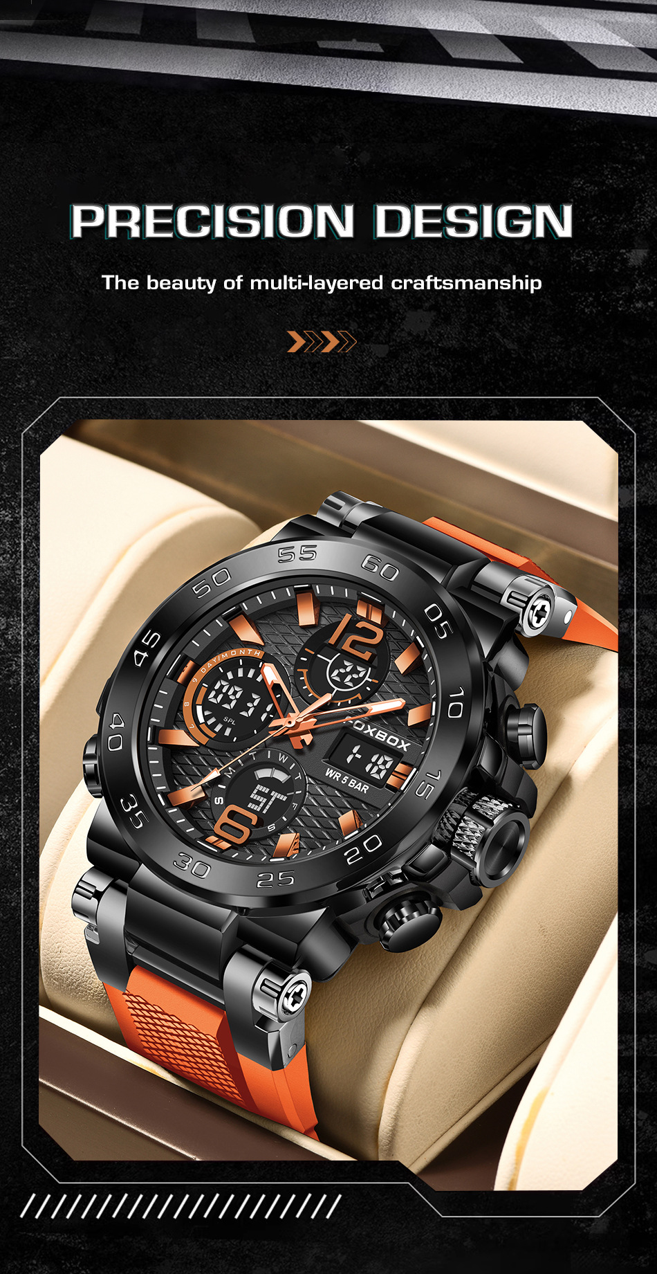 Product information:Colors: All Black, Black-Orange, Black-Green, Gold-Green, Silver-Blue, Camo Rose-Green, Camo Gold-Green, Camo All Black, Camo Silver-BlackTarget Audience: MenWatch Model:FB0077Move...