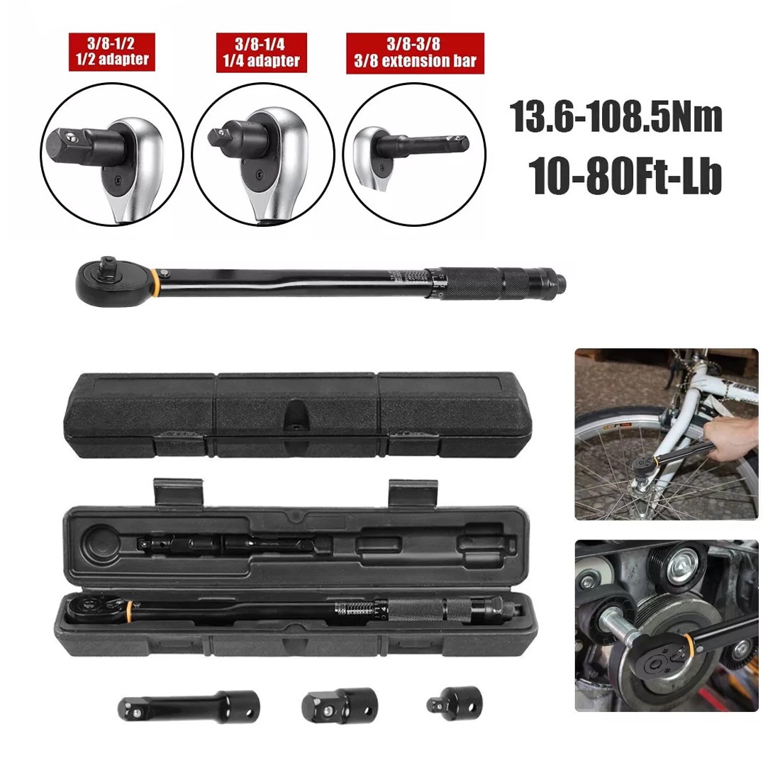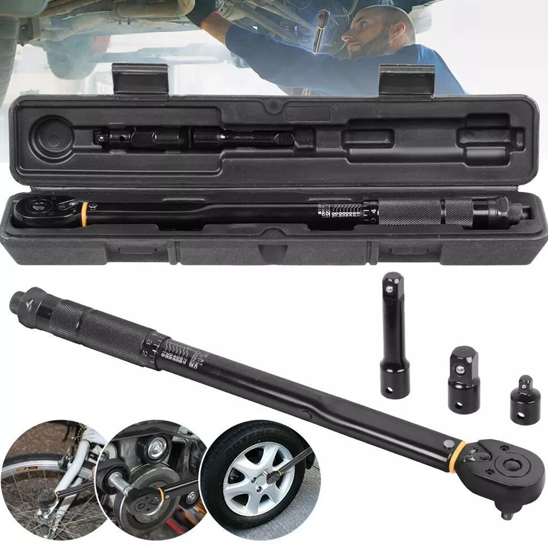 NEW 1X4 1X2 3X8 Square Drive Torque Wrench Ratchet 13.6-108.5Nm 10-80Ft-Lb 3in1 UK