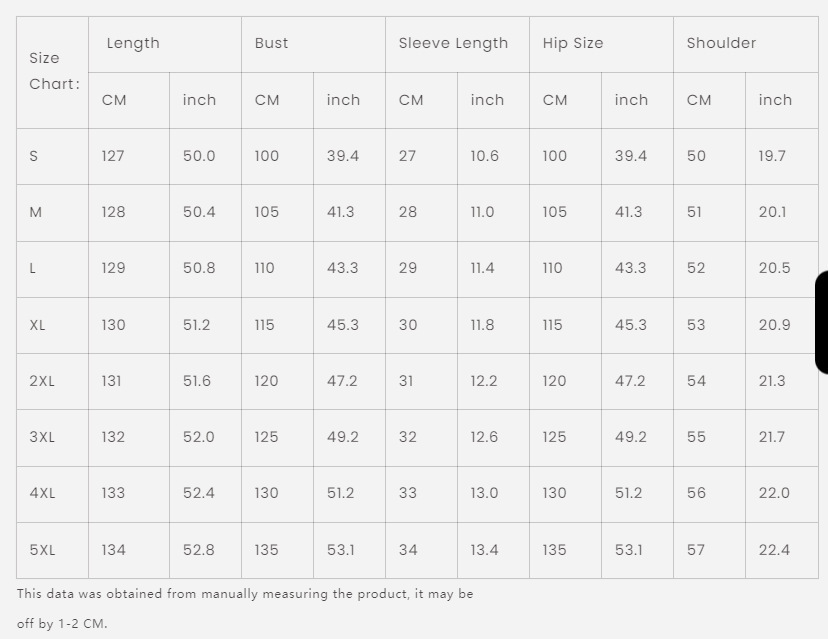 Sizes: S, M, L, XL, 2XL, 3XL, 4XL, 5XL
