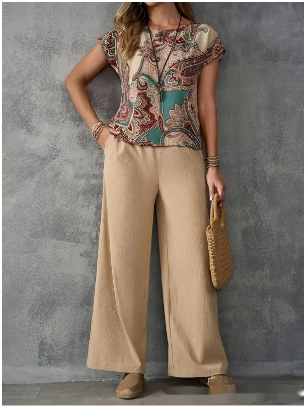 Niche Casual Printed Shirt With Wide-leg Trousers