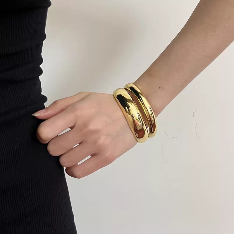 Product information:Treatment Process: ElectroplatingColor: gold, silverMaterial: MetalPopular elements: double ring Packing list: Bracelet * 1 Product Image: