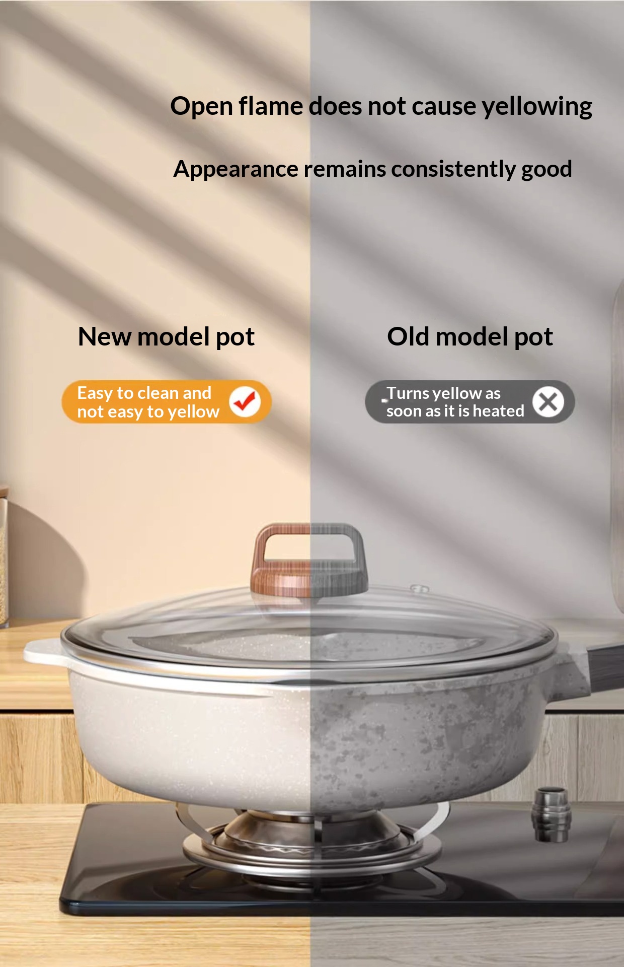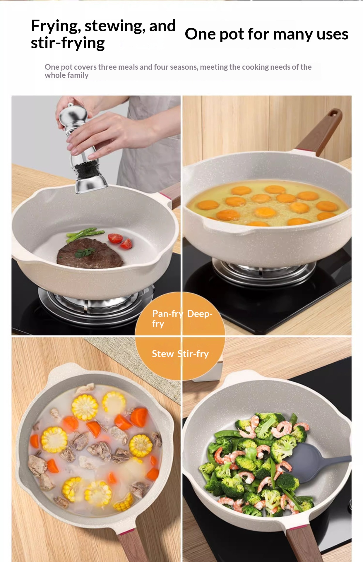 Product information:Material: Maifan stone Features: Smoke-free, nonstick Electric: No Depth: 8 cm Pot bottom material: Multi-layer composite base Specifications: 20 cm open pan; 24 cm open frying pan...