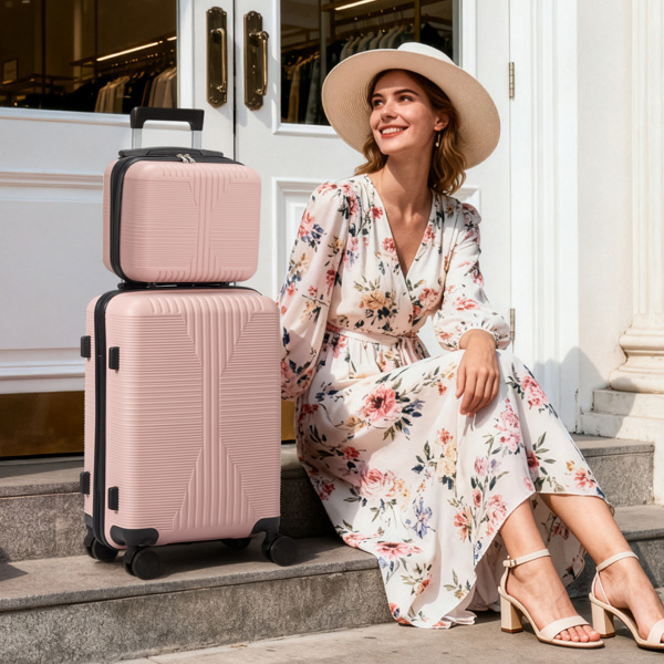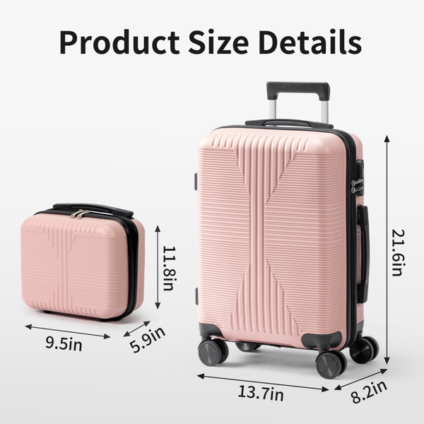 Non-TSA Customs Lock 2-in-1 PP Trolley Case, 12in/20in PP, Rose Gold
