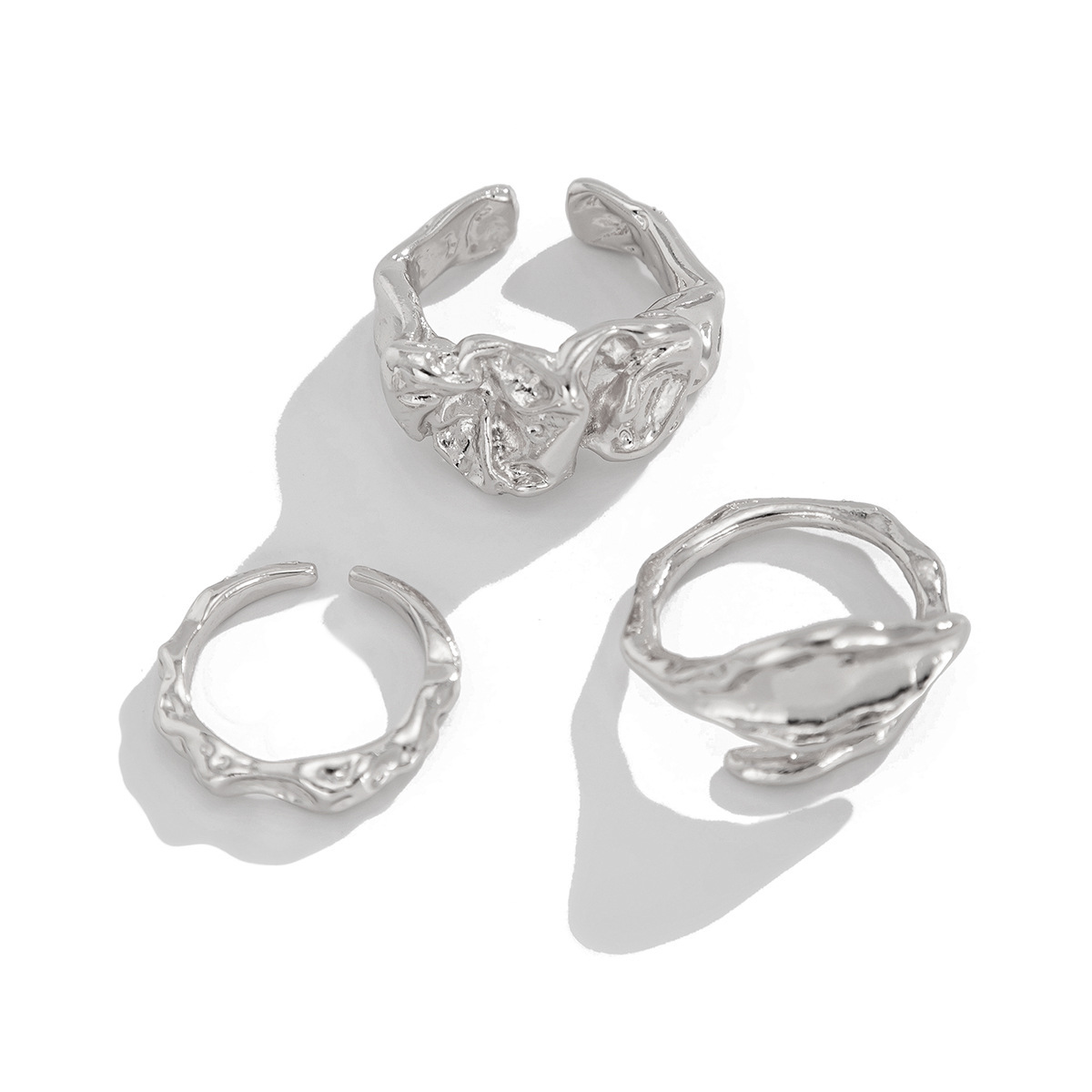Ocean Wind Ring Irregular Liquid-Like Lines Metal Open-End Ring