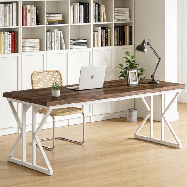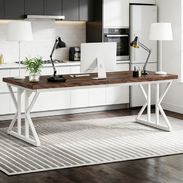 Spacious Workspace - With a large 78.74"L x 27.55"W desktop, our two-person computer desk easily fits dual monitors, a computer, a printer, and other essentials.Double Desk Design - Comfortably accommodating two people, our desk boosts productivity and collaborative multitasking, allowing resource sharing and easy communication.