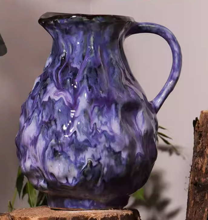 Product information:Material: CeramicStyle: Oil paintingUsage: IndoorDesign: Teapot, Purple, BluePacking list:Vase x1pc