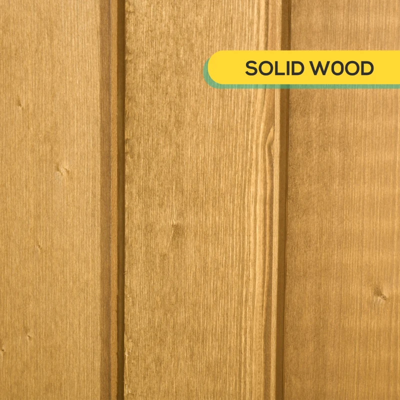 Features: - Spacious space for storing tools, garden tools, lawn care equipment and more - Built from 100% fir wood construction - Coated with exterior painting and stands off-ground - Slo...