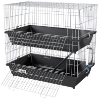 PawHut 2-Tier Small Animal Cage With 2 Doors, Trays, Dish, Bottle, And Ramp For Bunny, Ferret, Chinchilla, Black