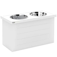 - - Easy to Clean: This feeding station is built for daily use, crafted from MDF, and paired with stainless steel bowls. The bowls are easy to clean, while non-slip silicone rings keep everything in place—no sliding or tipping, even with eager eaters