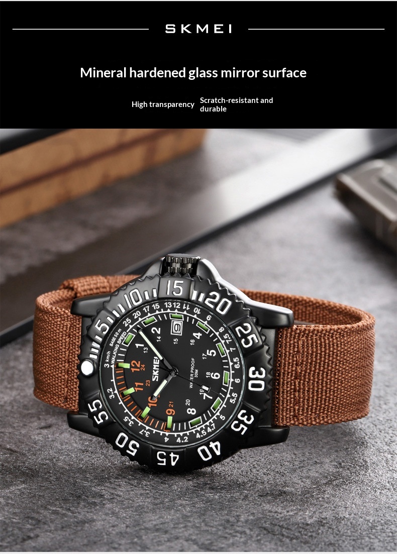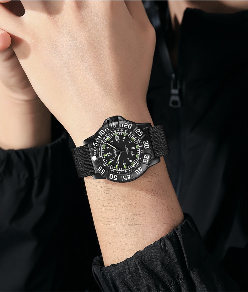 Personalized Calendar Mens Luminous Quartz Watch With A Casual Nylon Strap