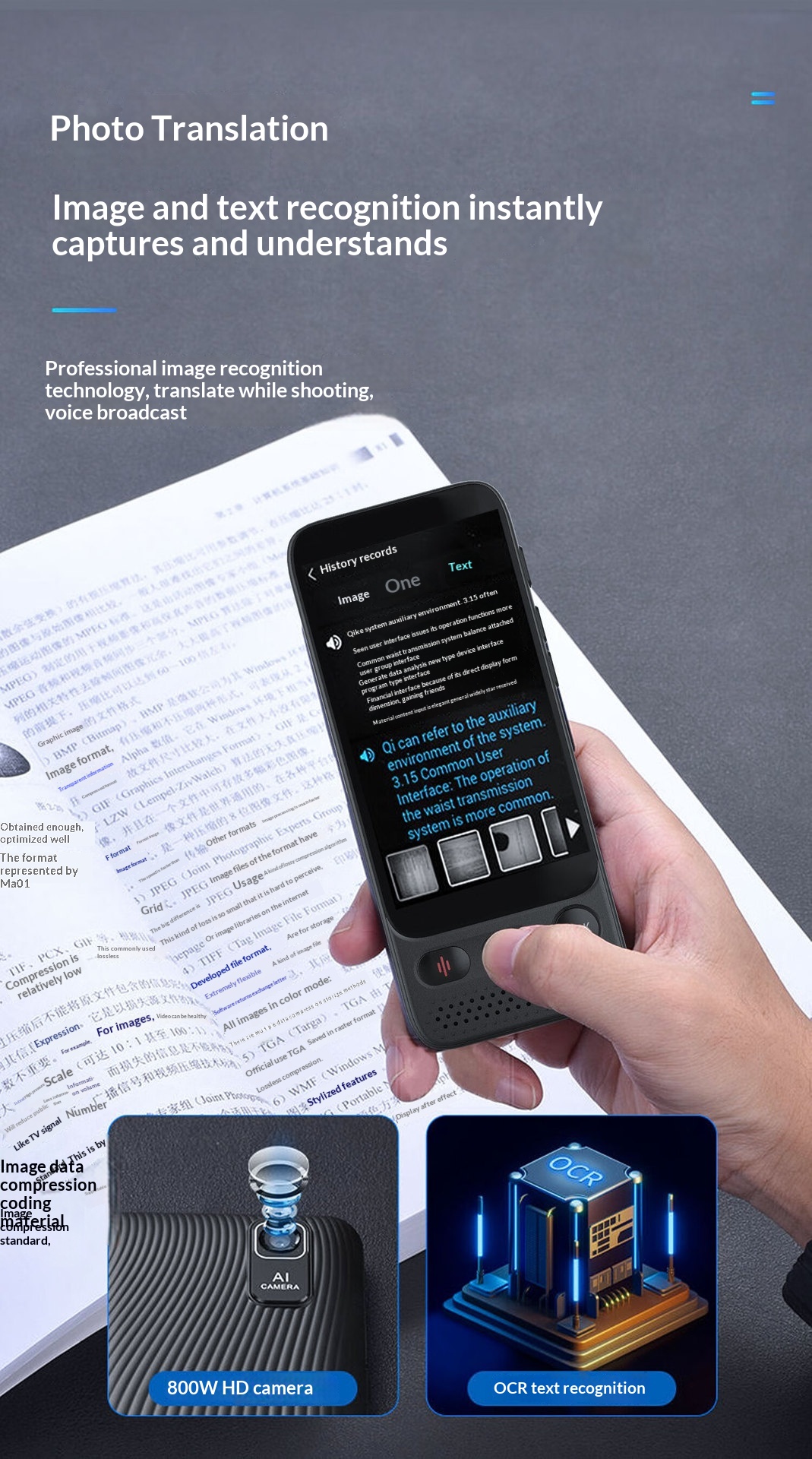 Photo Translation Device With Simultaneous Voice Translation In English