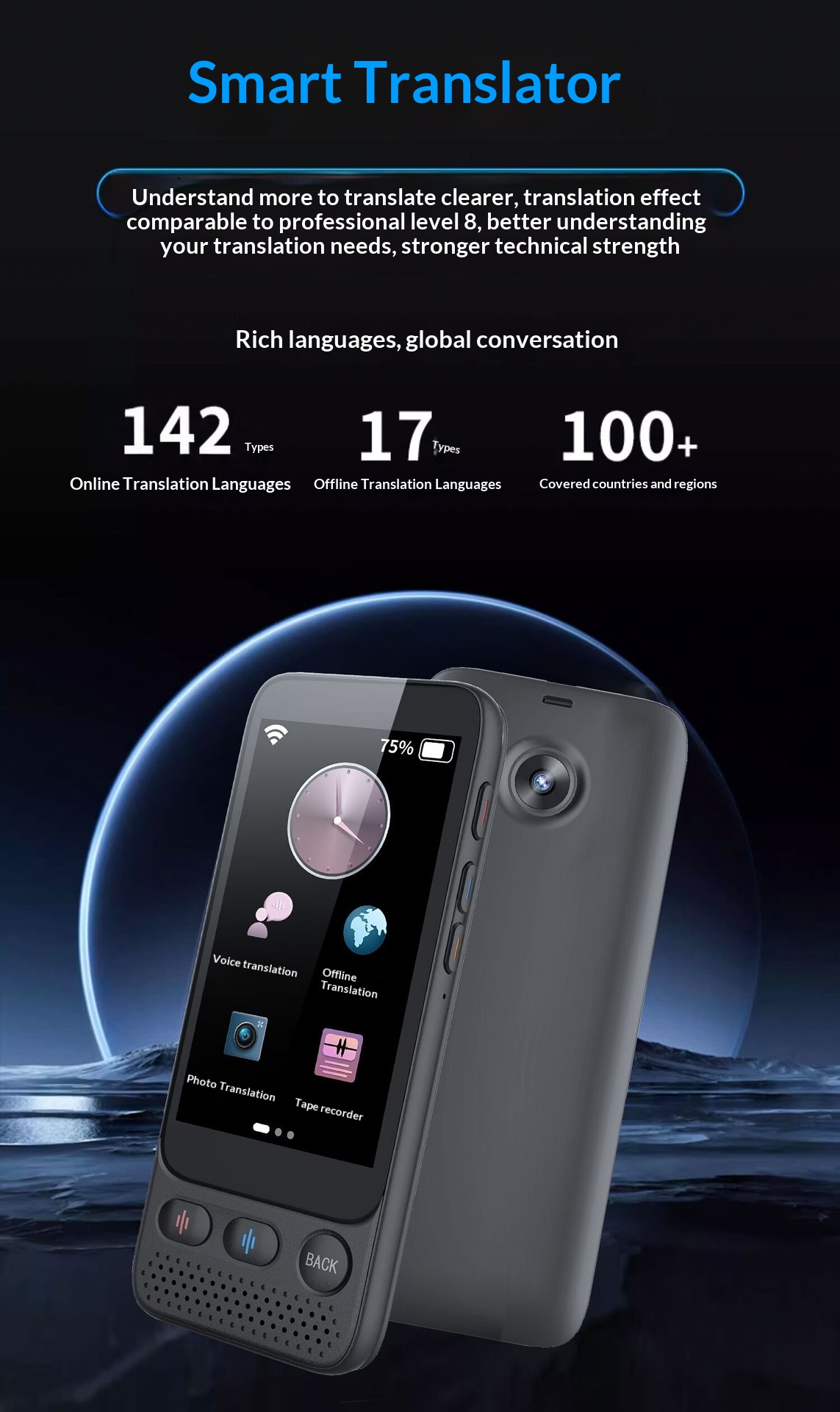 Product information:Product: Intelligent Translation MachineColor: BlackStyle: 16GB, 16+32G, 16+64GFunction: Online, Offline , Voice, Photo,Simultaneous Packing list: Translation Machine* 1 Pr...
