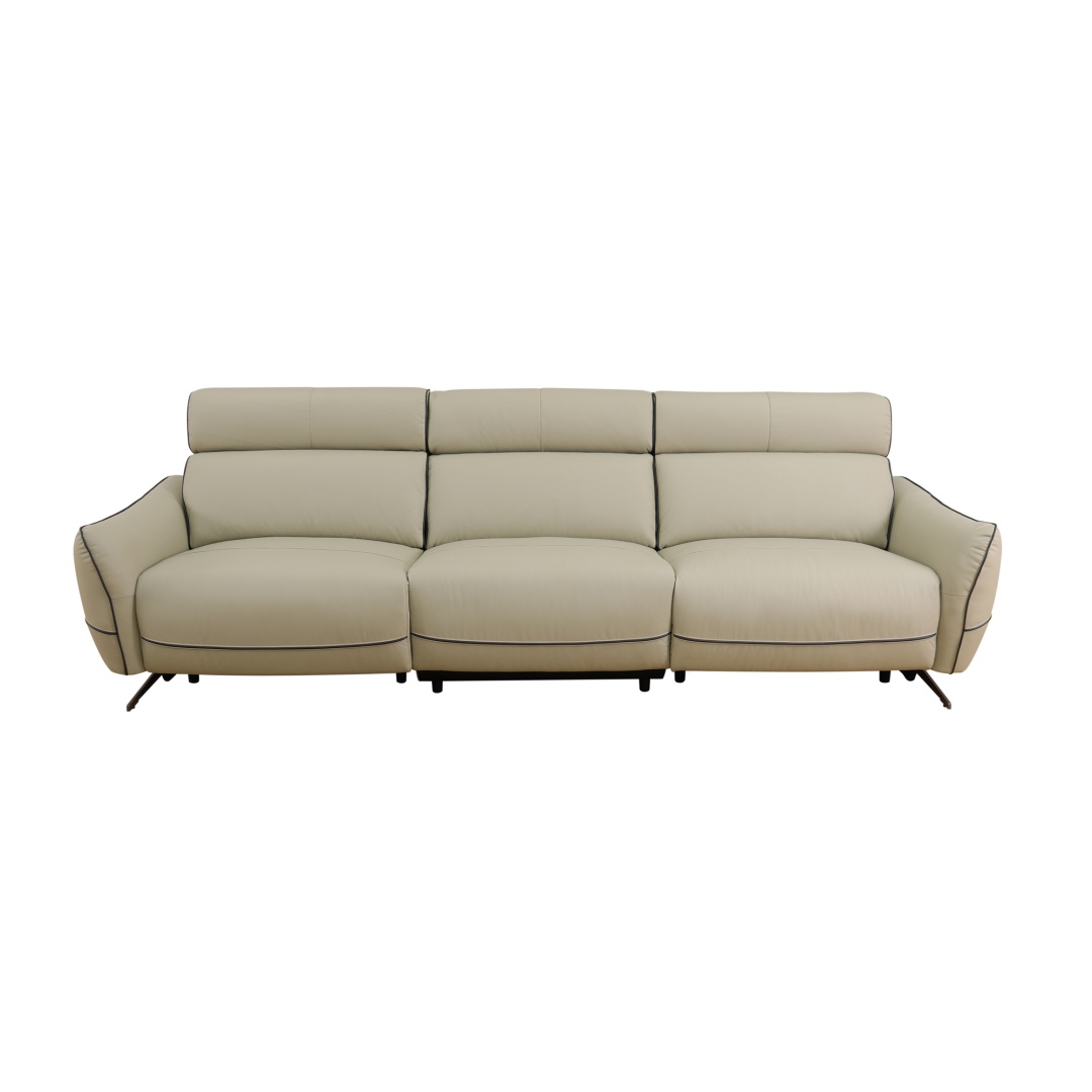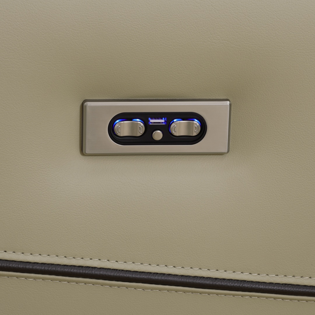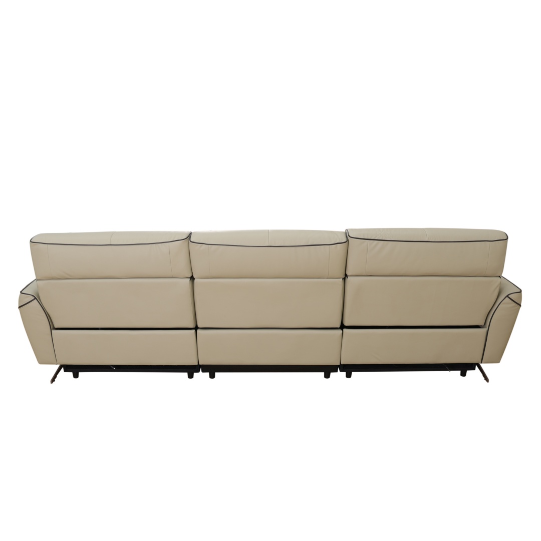 Pickup Only--Beige Top Grain Leather And PVC 3-Piece Living Room Recliner Sofa Set