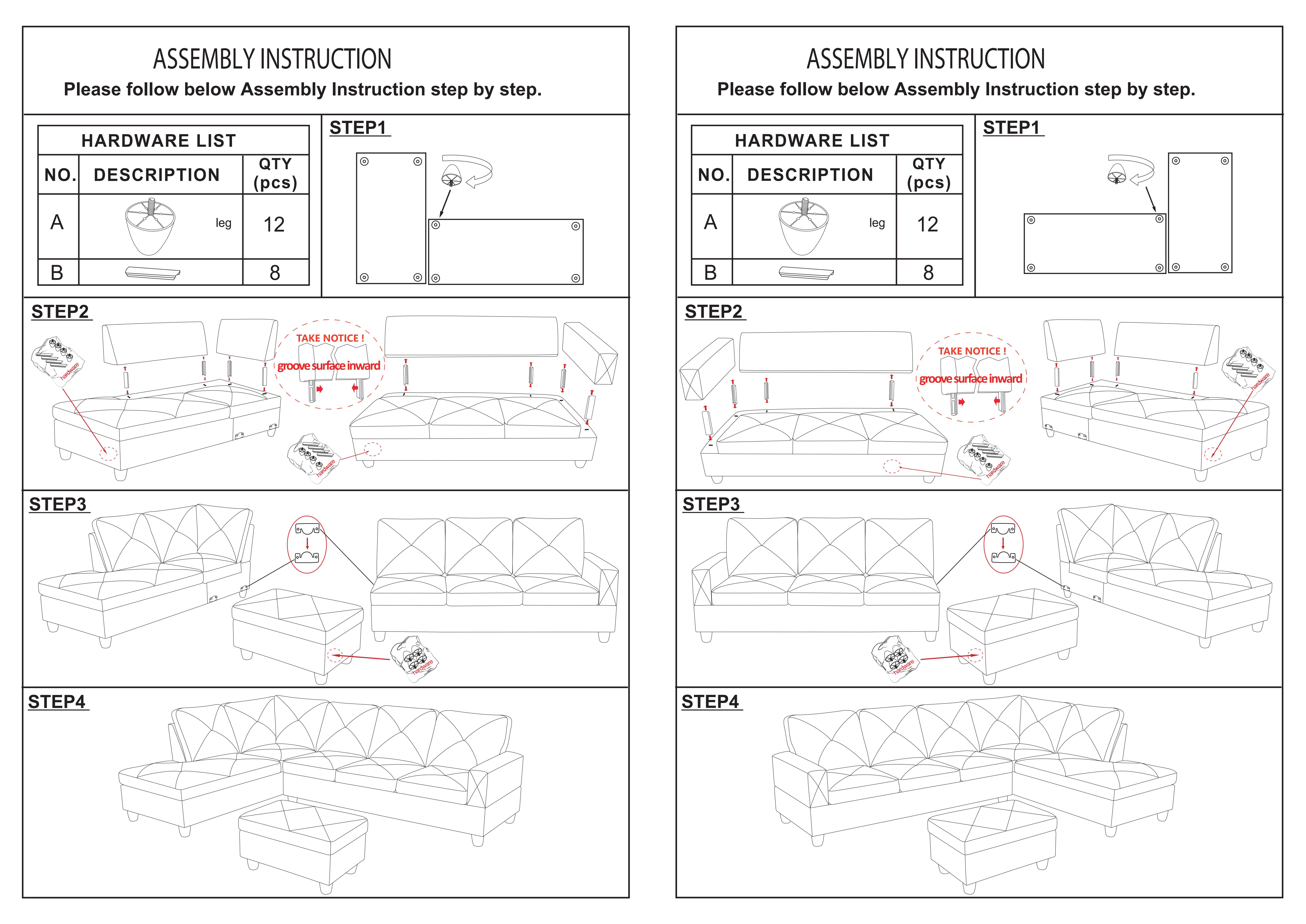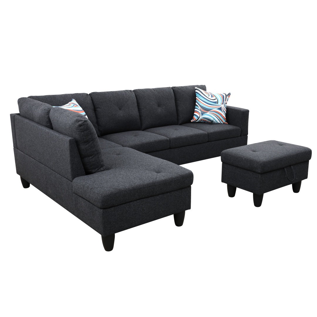 | CHARACTERISTIC | a. The product (Black) made of top material, exquisite materials, fine workmanship b. X style line pressing point concave surface, unique design, smooth line, excellent view, bring the product with strong sense of elegance b. The sofa and chaise can be splited, free combination can meet the demand for usage in different situations, comfortable sitting, durable using, clean design c. The ottoman with storage function, can store small items for daily use, which is flexible and convenient |