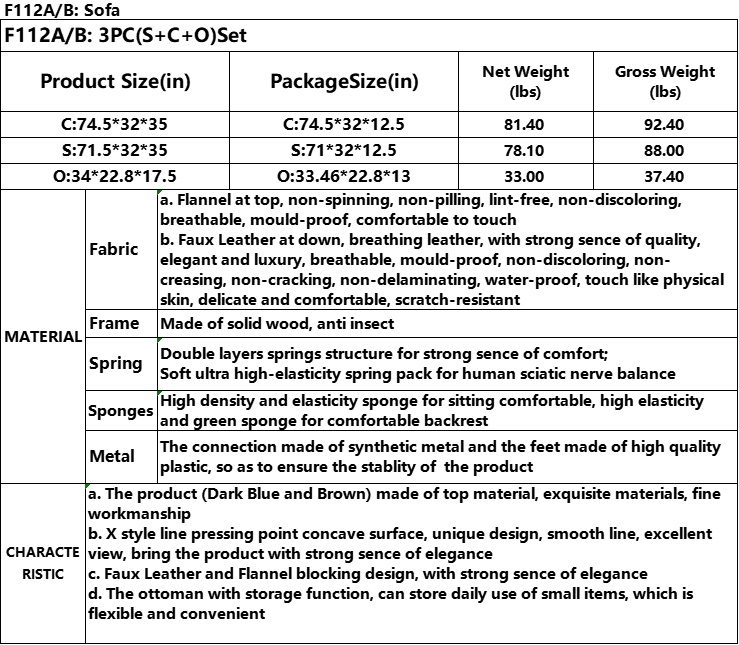 Pickup Only--Dark Blue And Brown Color Lint And PVC 3-Piece Couch Living Room Sofa Set
