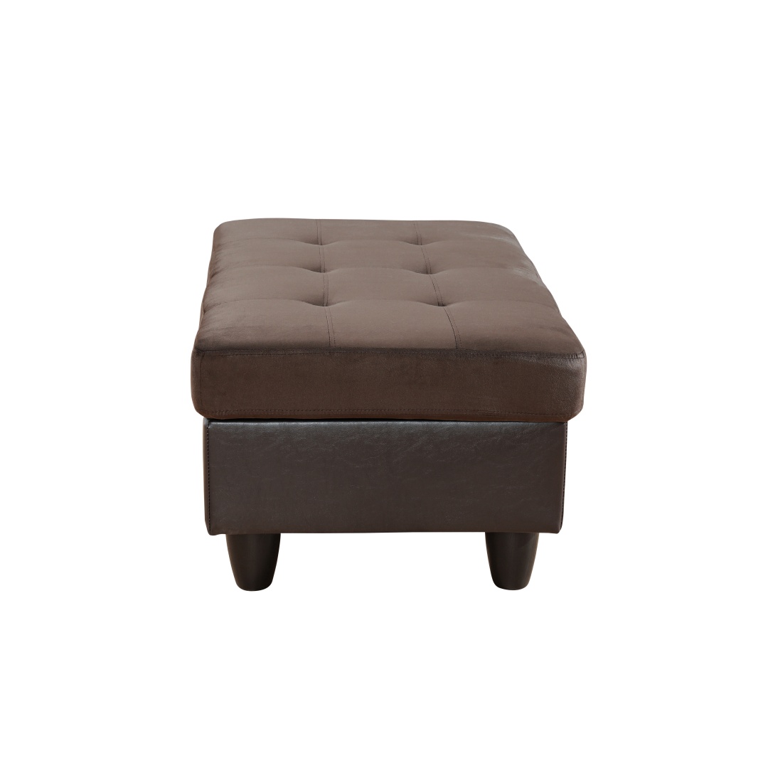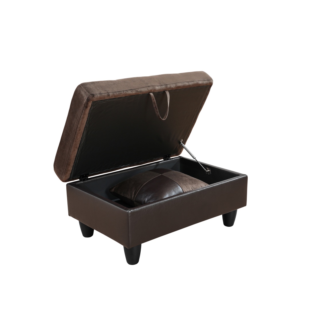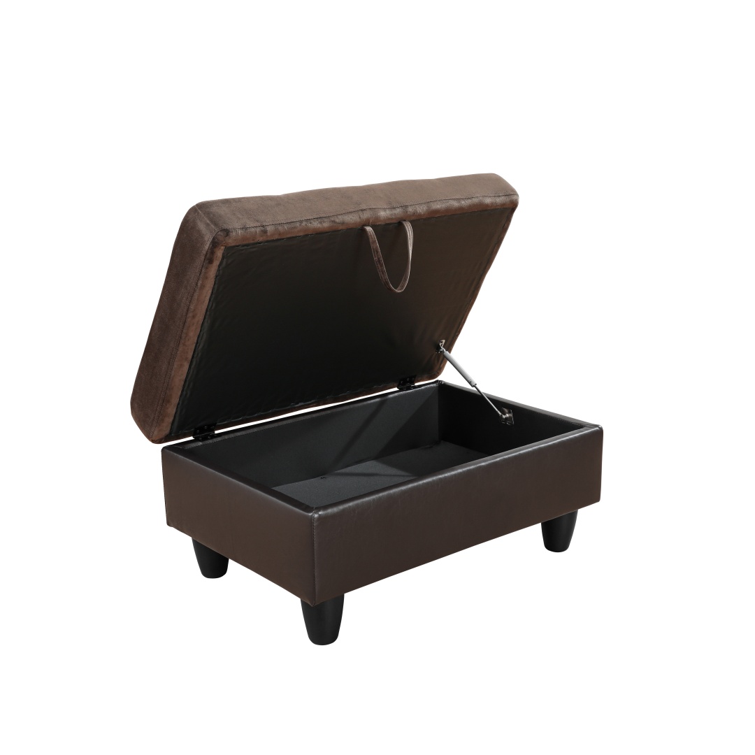 | CHARACTERISTIC | a. The product (Dark Brown) made of top material, exquisite materials, fine workmanship b. X style line pressing point concave surface, unique design, smooth line, excellent view, bring the product with strong sense of elegance c. Faux Leather and Flannel blocking design, with strong sense of elegance d. The ottoman with storage function, can store small items for daily use, which is flexible and convenient |