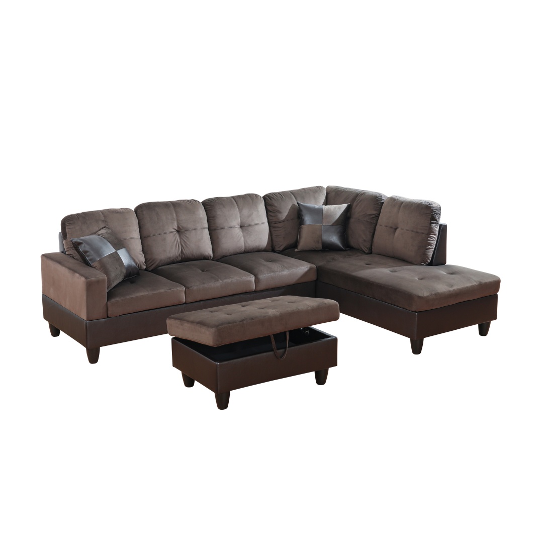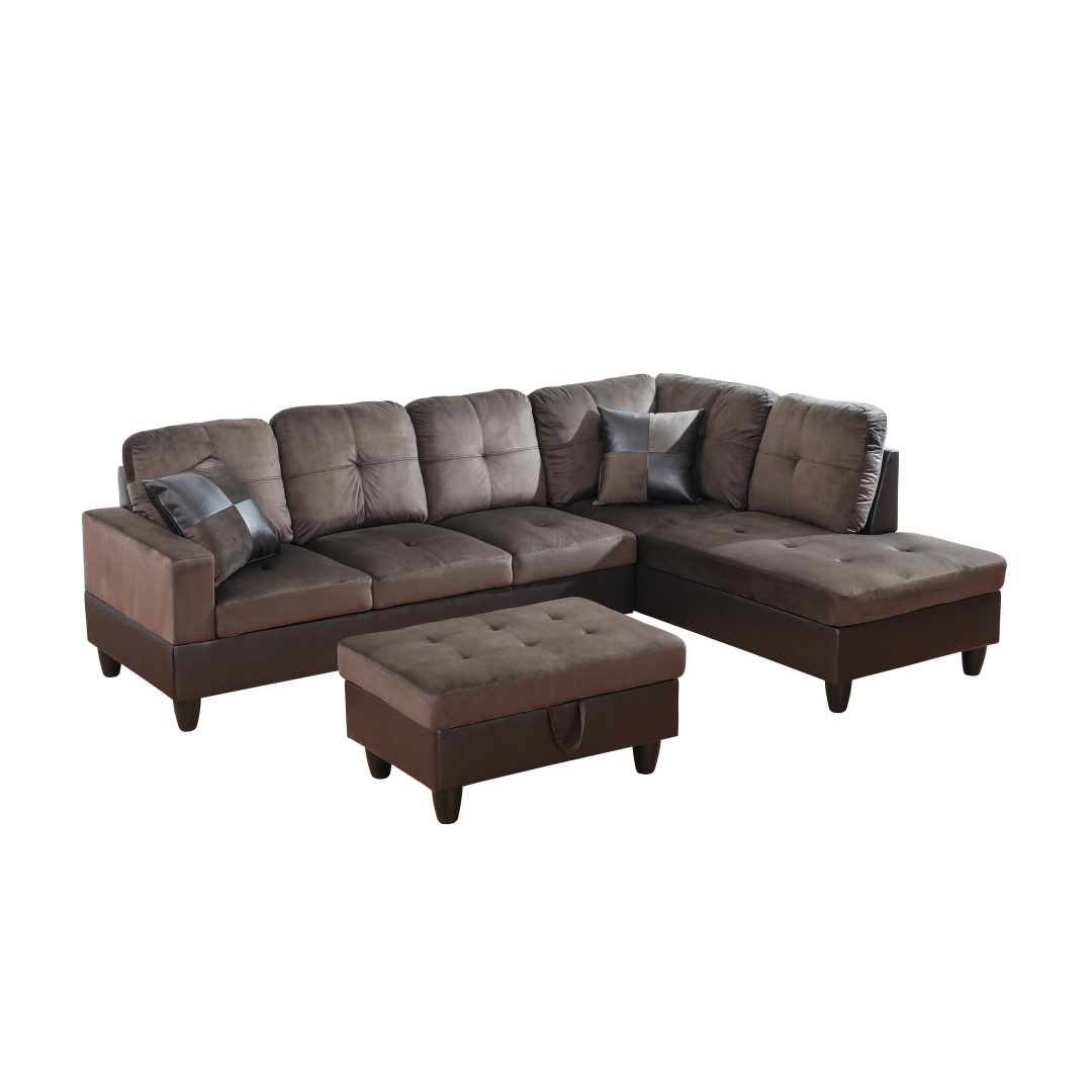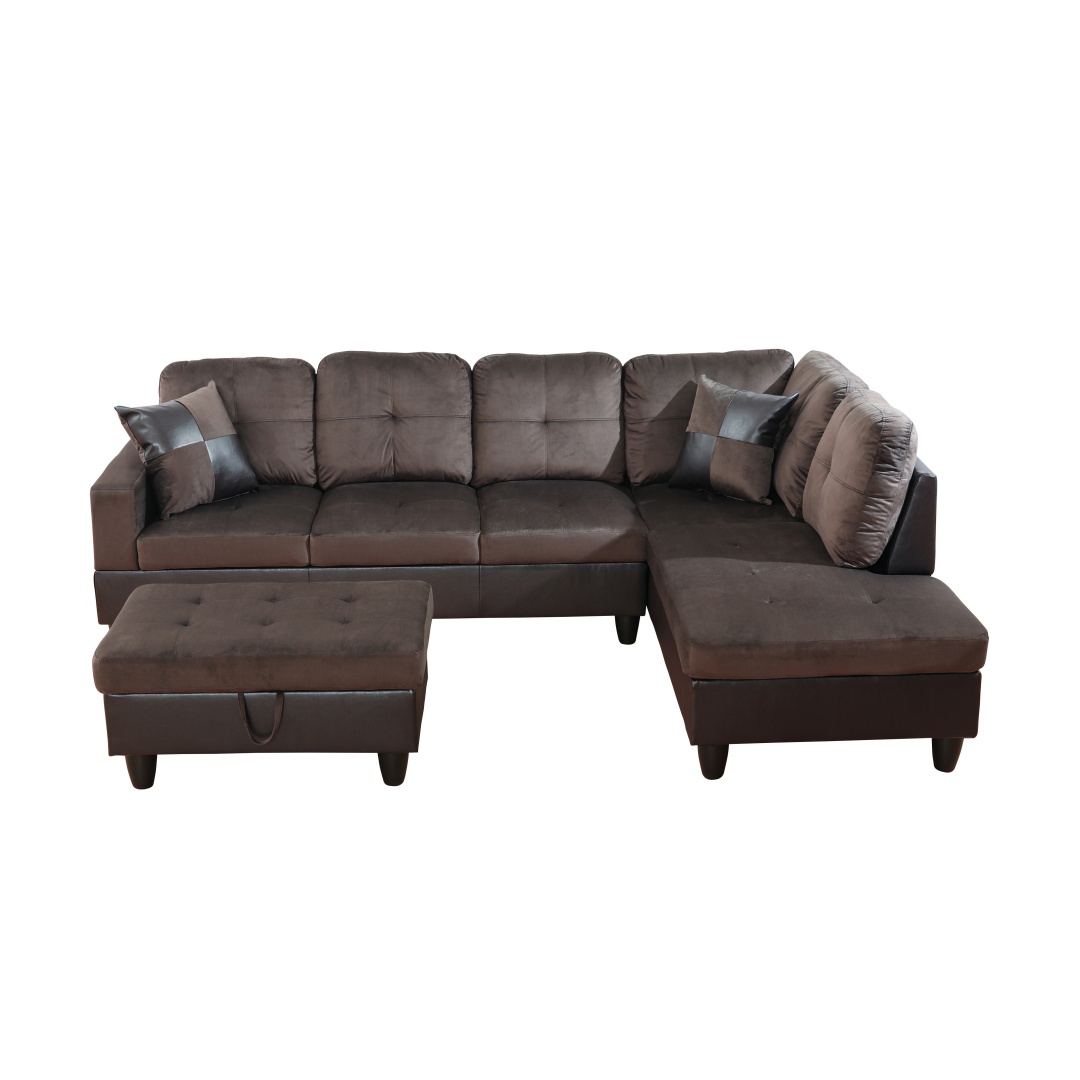 | CHARACTERISTIC | a. The product (Dark Brown) made of top material, exquisite materials, fine workmanship b. X style line pressing point concave surface, unique design, smooth line, excellent view, bring the product with strong sense of elegance c. Faux Leather and Flannel blocking design, with strong sense of elegance d. The ottoman with storage function, can store small items for daily use, which is flexible and convenient |