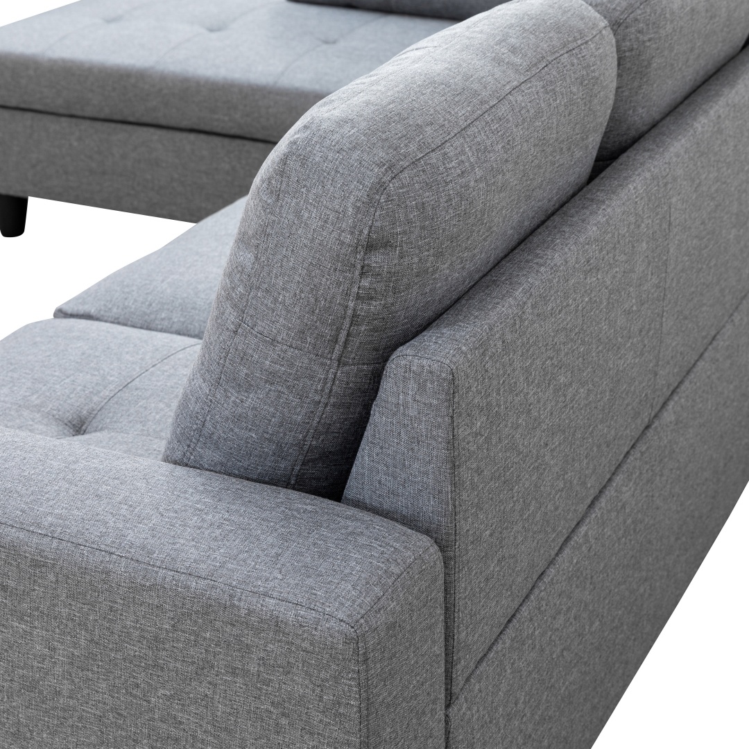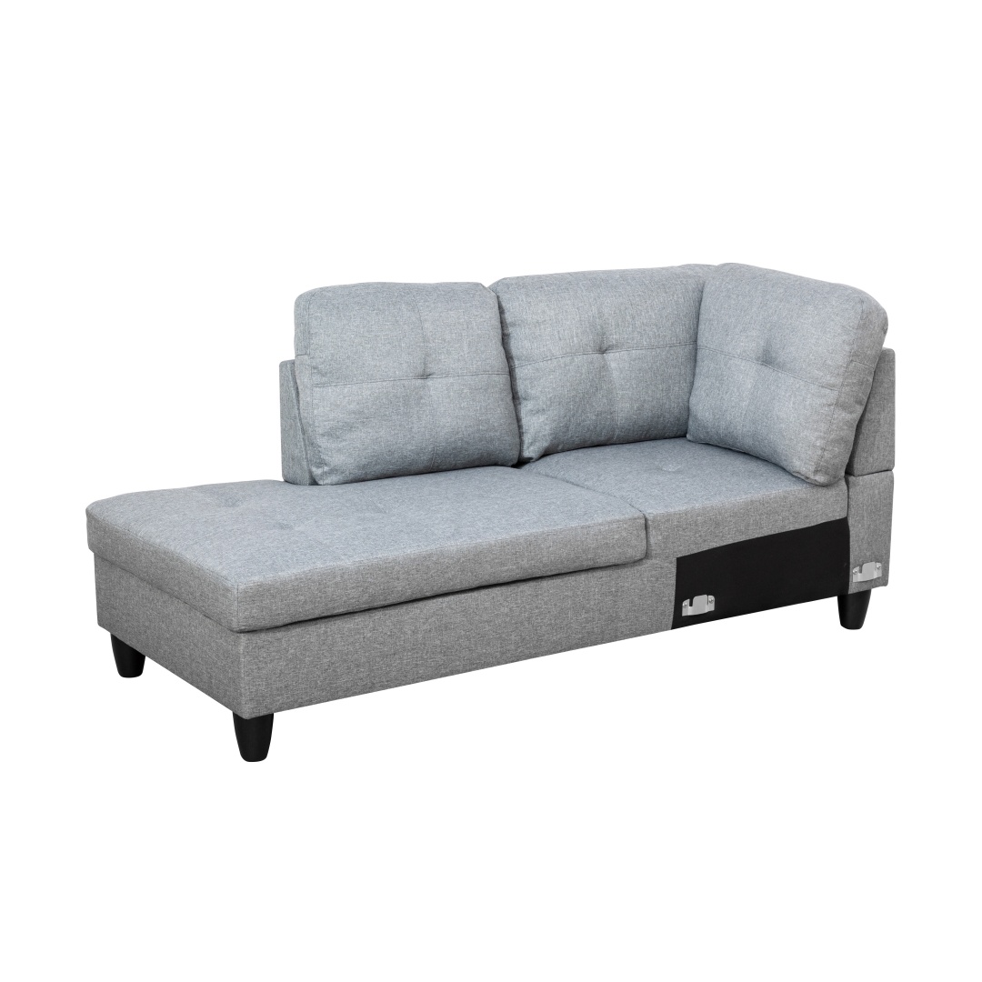 | CHARACTERISTIC | a. The product (Grey) made of top material, exquisite materials, fine workmanship b. X style line pressing point concave surface, unique design, smooth line, excellent view, bring the product with strong sense of elegance c. The sofa and chaise can be splited, free combination can meet the demand for usage in different situations, comfortable sitting, durable using, clean design d. The ottoman with storage function, can store daily using small items, which is flexible and convenient |