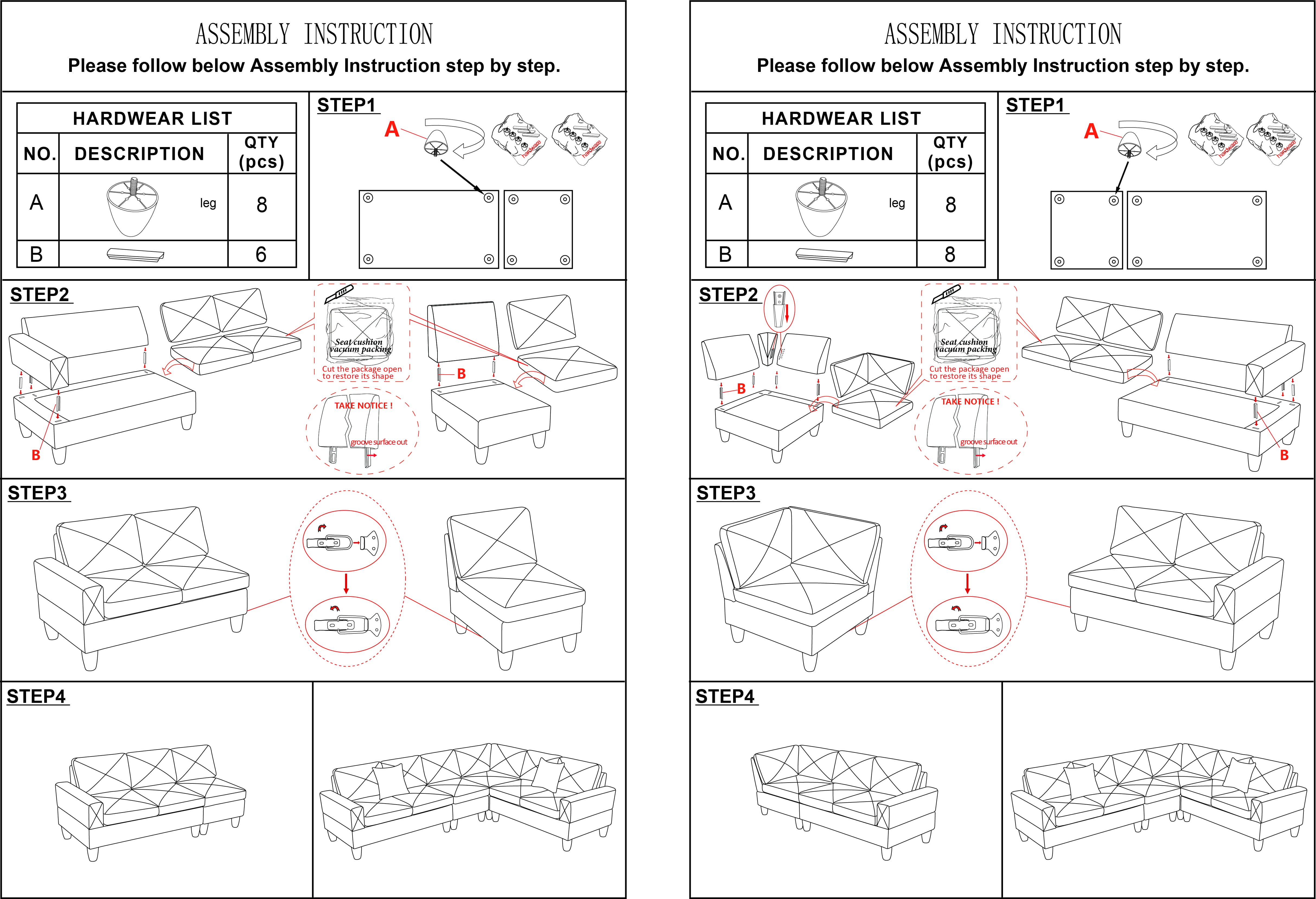 F22306: Corner Sofa F22306:2PCS(LS+C+W+RS) Set...