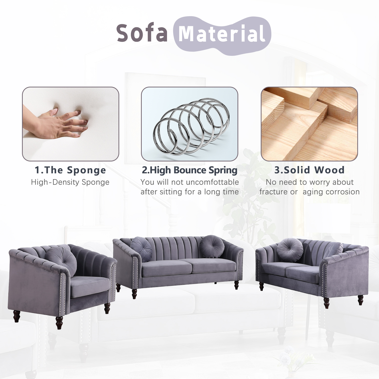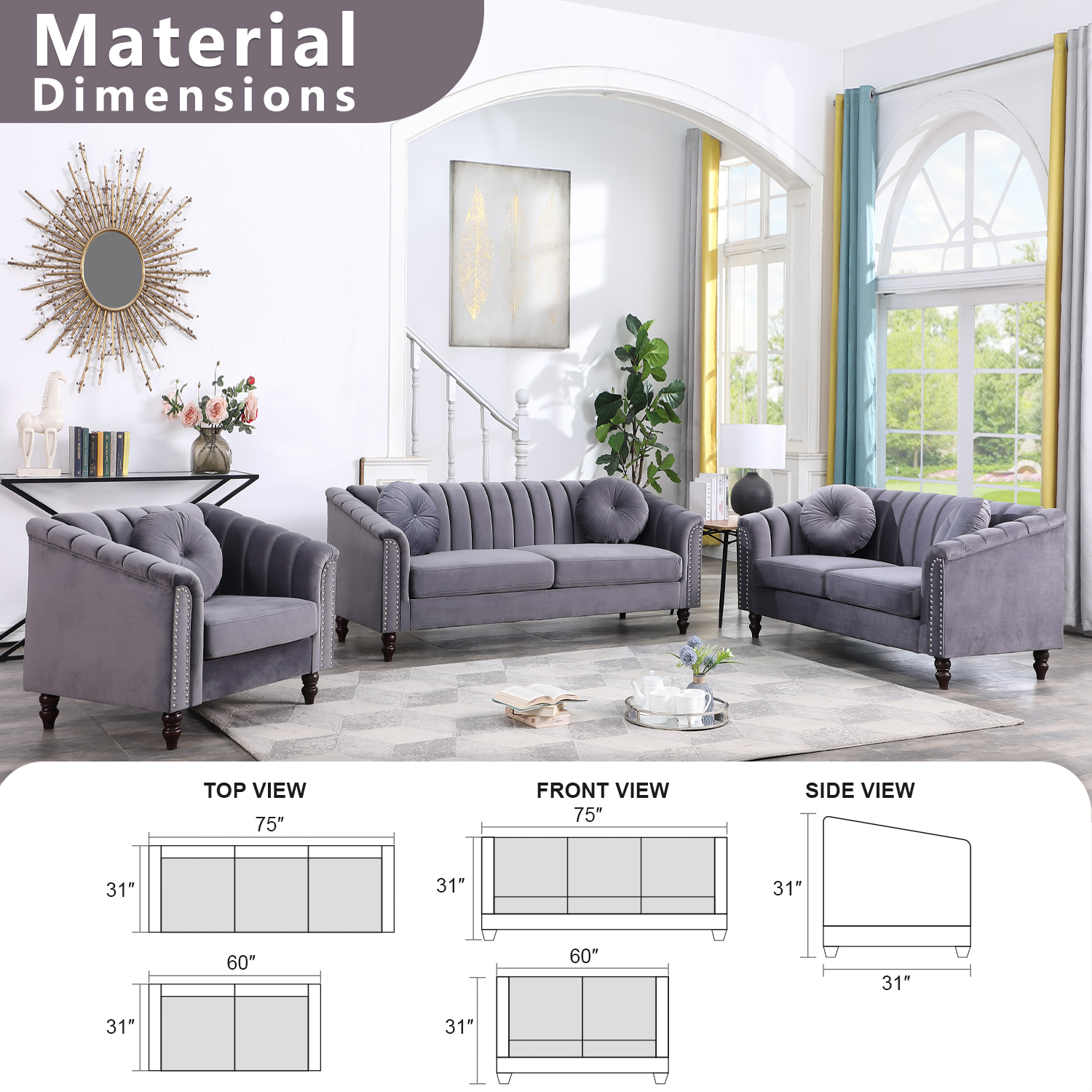 Pickup Only--Grey Microfiber 3-Piece Couch Living Room Sofa Set