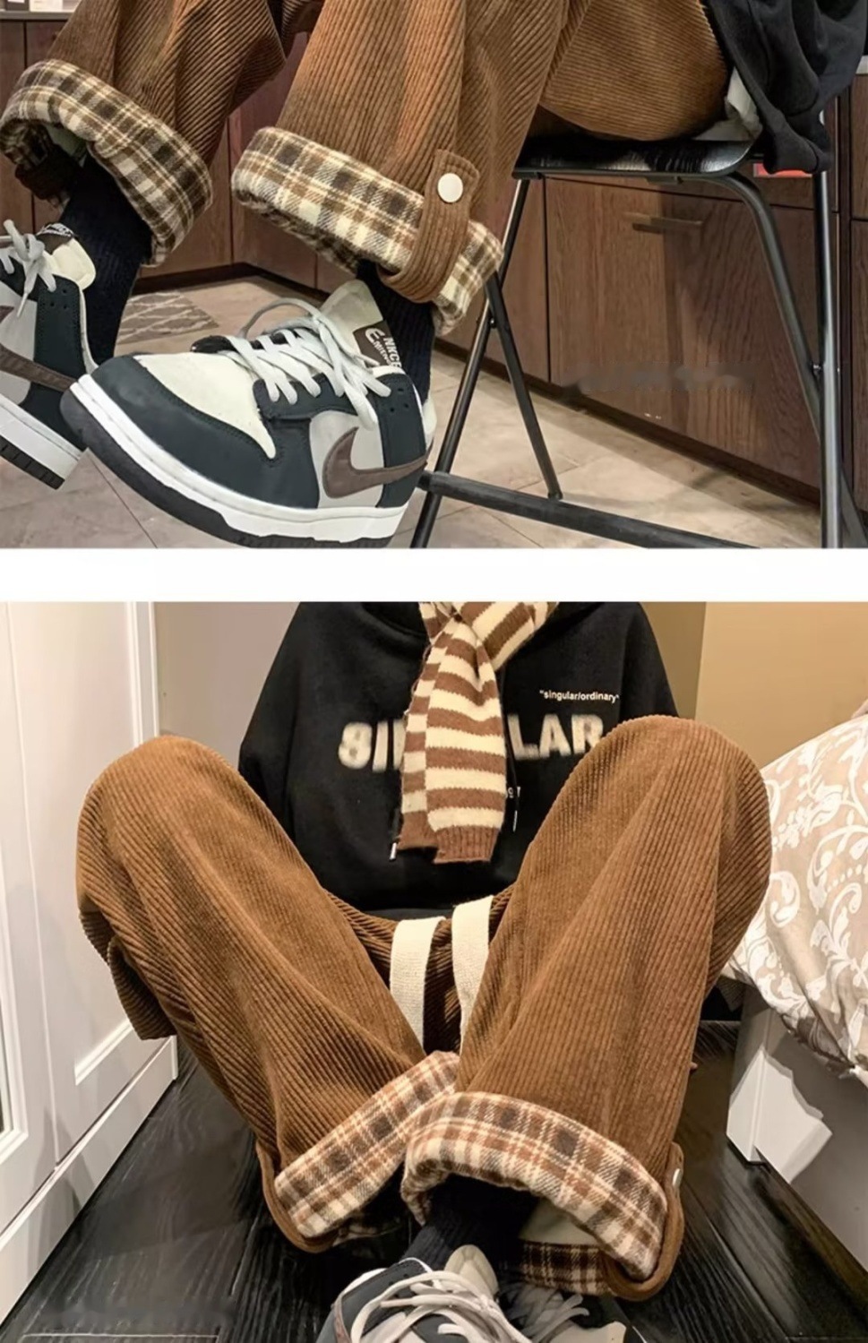 Product information:Pattern: Plaid Colors: Coffee, Apricot, Black Pants Length: Full Length Waist Style: Mid-Waist Suitable For: Teenagers Sizes: M, L, XL, 2XL, 3XL Front Closure: Drawstring Design St...