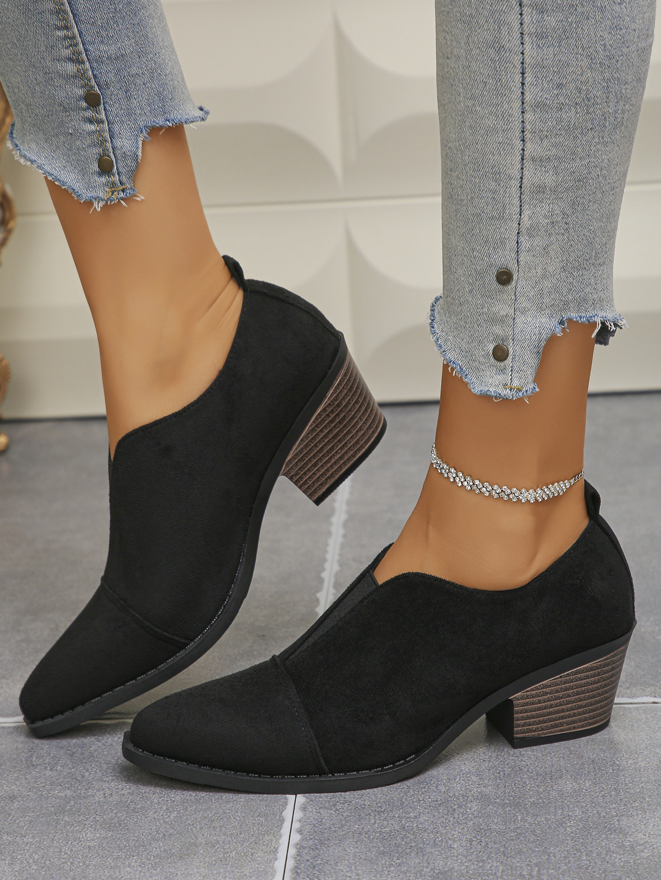 Product information:Pattern: Solid color Inner material: PU Colors: Black, off-white, dark brown, black fabric Heel height: Mid heel (3–5 cm) Shaft height: Low-top Heel shape: Chunky heel Sizes: 35, 3...
