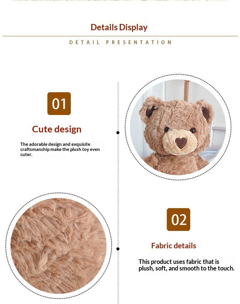 Product information:Colors: White heart-shaped bear, dark brown heart-shaped bear, light brown heart-shaped bear Height: Approximately 42 cm total length Filling Material: PP cotton Packing list: Pl...