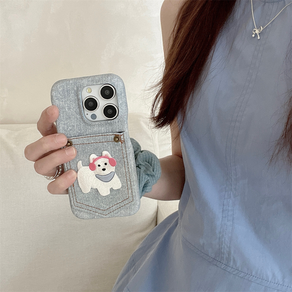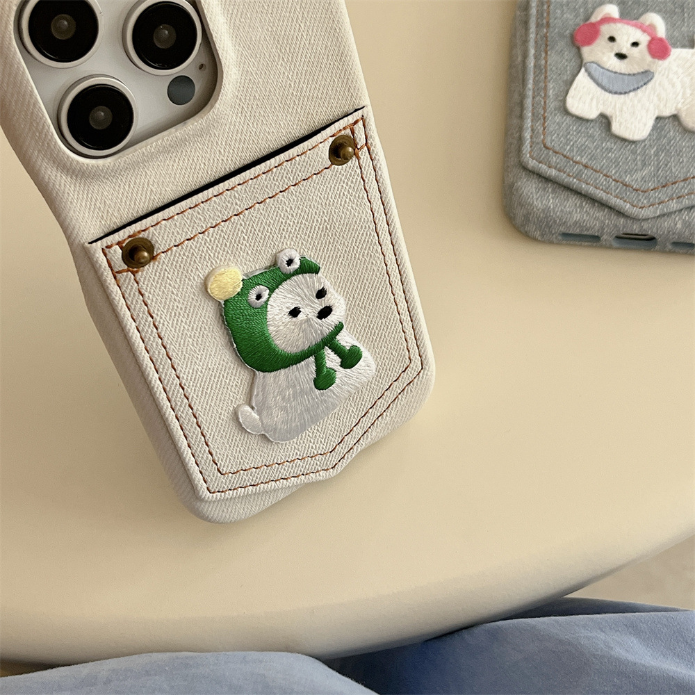 Pocket Card Holder Cartoon Animal Phone Case Niche Solid Color