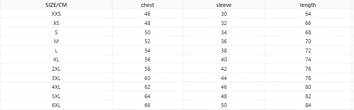 Sizes: XXS, XS, S, M, L, XL, XXL, XXXL, 4XL, 5XL, 6XL, 7XL