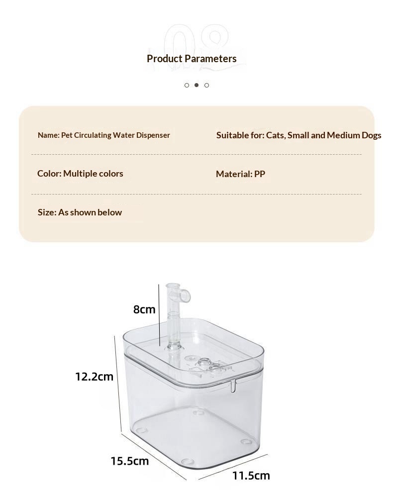 Product information:Specifications: USB, EU, US Color: Fully transparent small crystals made from PET Material: Plastic Suitable for: Cats Category: Pet feeding toolsPacking list: Cat Water Fountain-2...