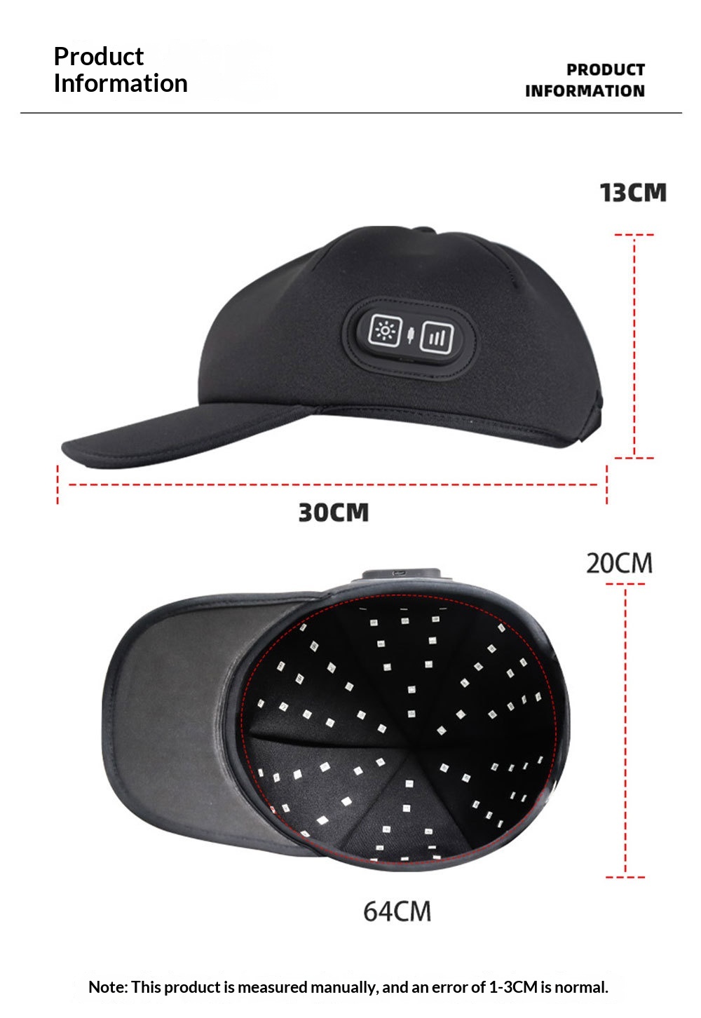 Product information:Color: Black with a red lampshade (dual-control, portable) Settings: Three red-light modes, three pulse modes Specifications: Unisex Function: Red light therapy for hair care and s...
