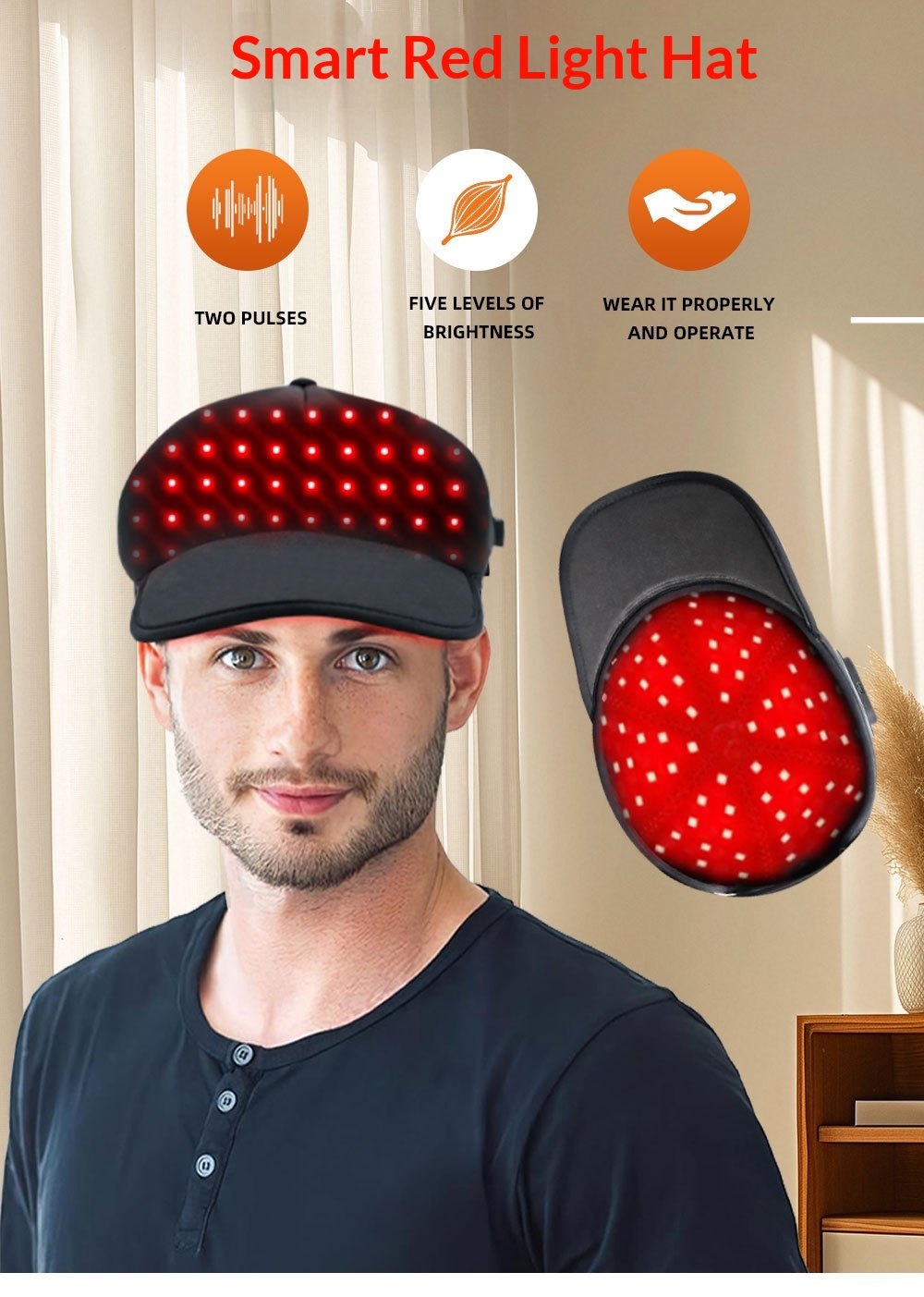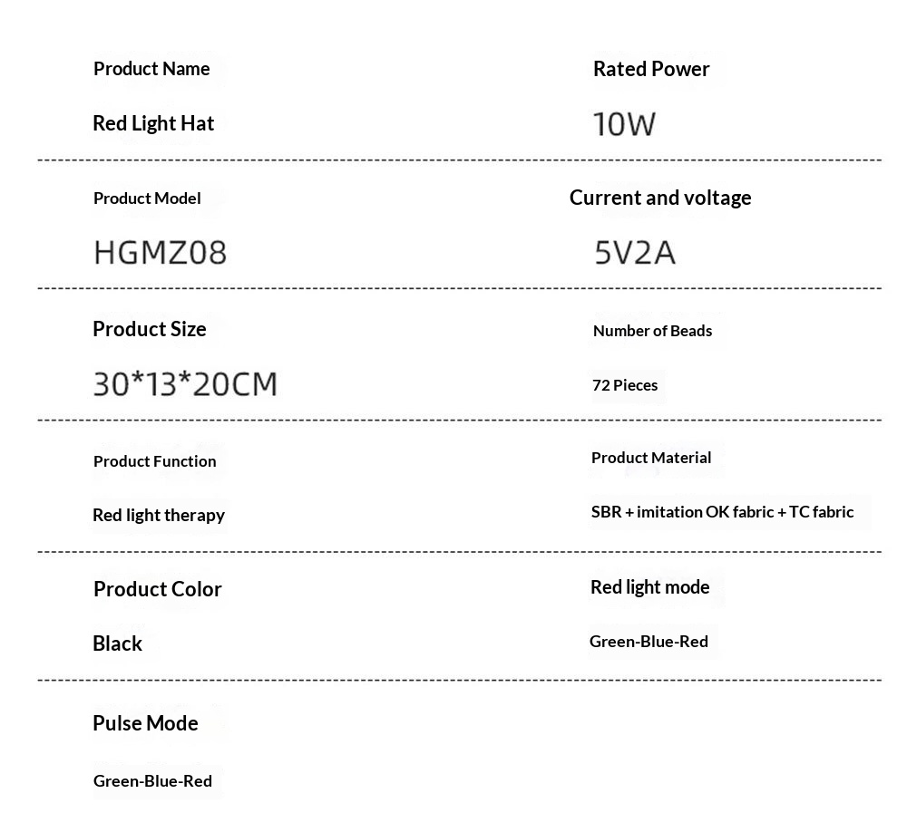 Red light hat*1, USB charging cable*1, English manual*1, neutral color box*1
