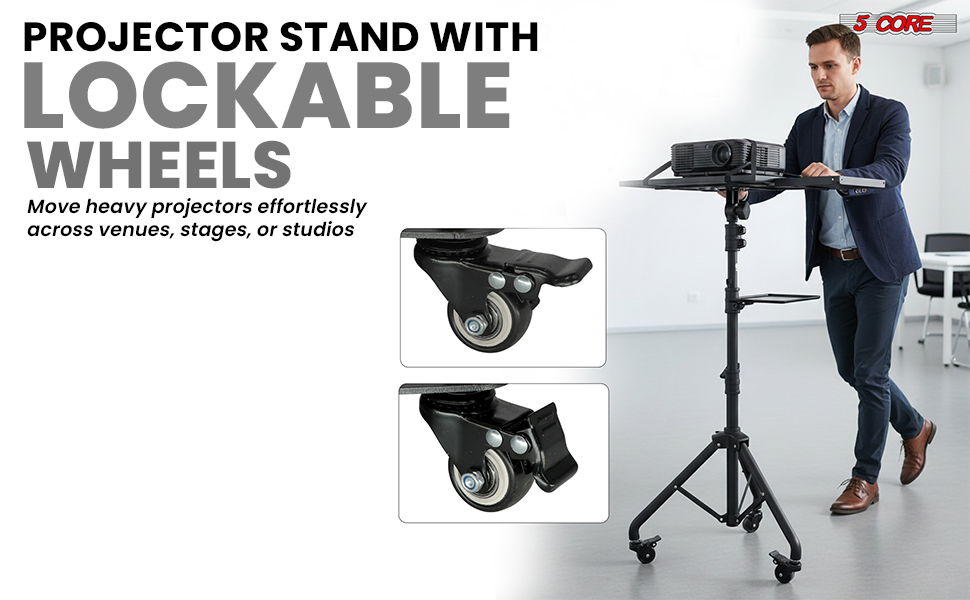 Equipped with durable, smooth-rolling wheels, this projector stand moves effortlessly between rooms, classrooms, or event spaces.
