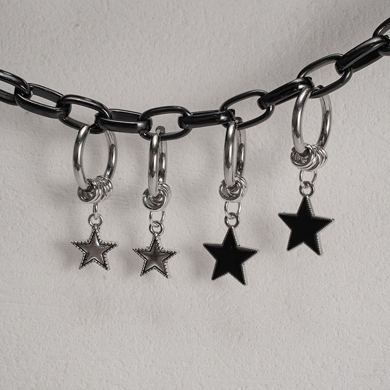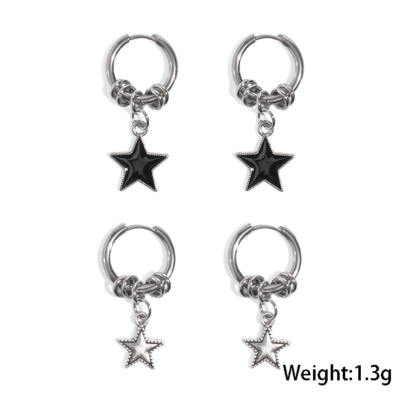 Color: Stainless Steel Black Pentagram Pendant Earrings, Stainless Steel Silver Pentagram Pendant Earrings