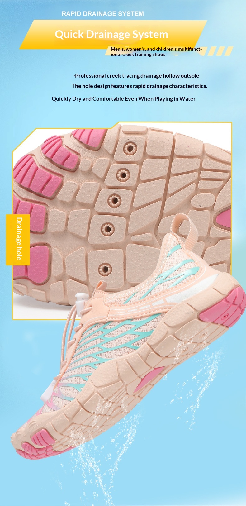 Quick-Entry Water-Resistant Anti-Slip Stream-Tracking Shoes Unisex Kids Shoes Cut-Resistant Breathable Beach Shoes