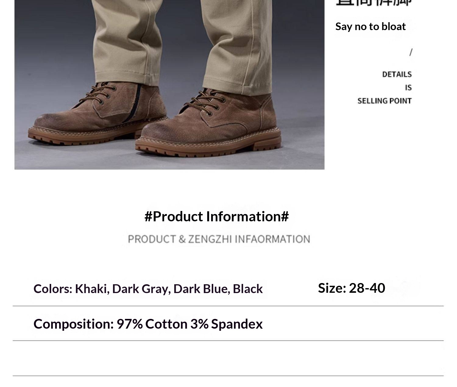 Material composition: 97% cotton, 3% polyurethane (spandex)