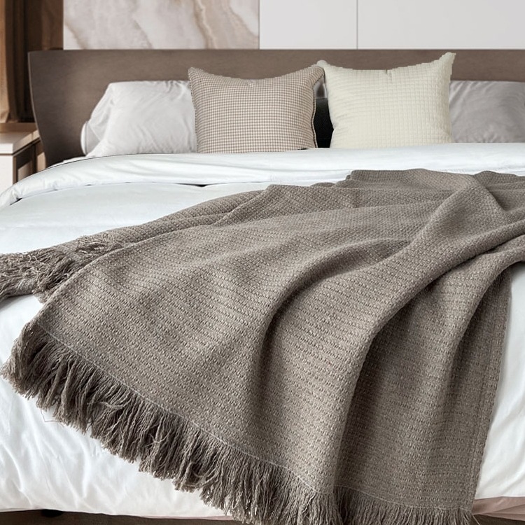 Retro Blanket In Brown-gray Wabi-sabi-style Bed Runner Or Throw