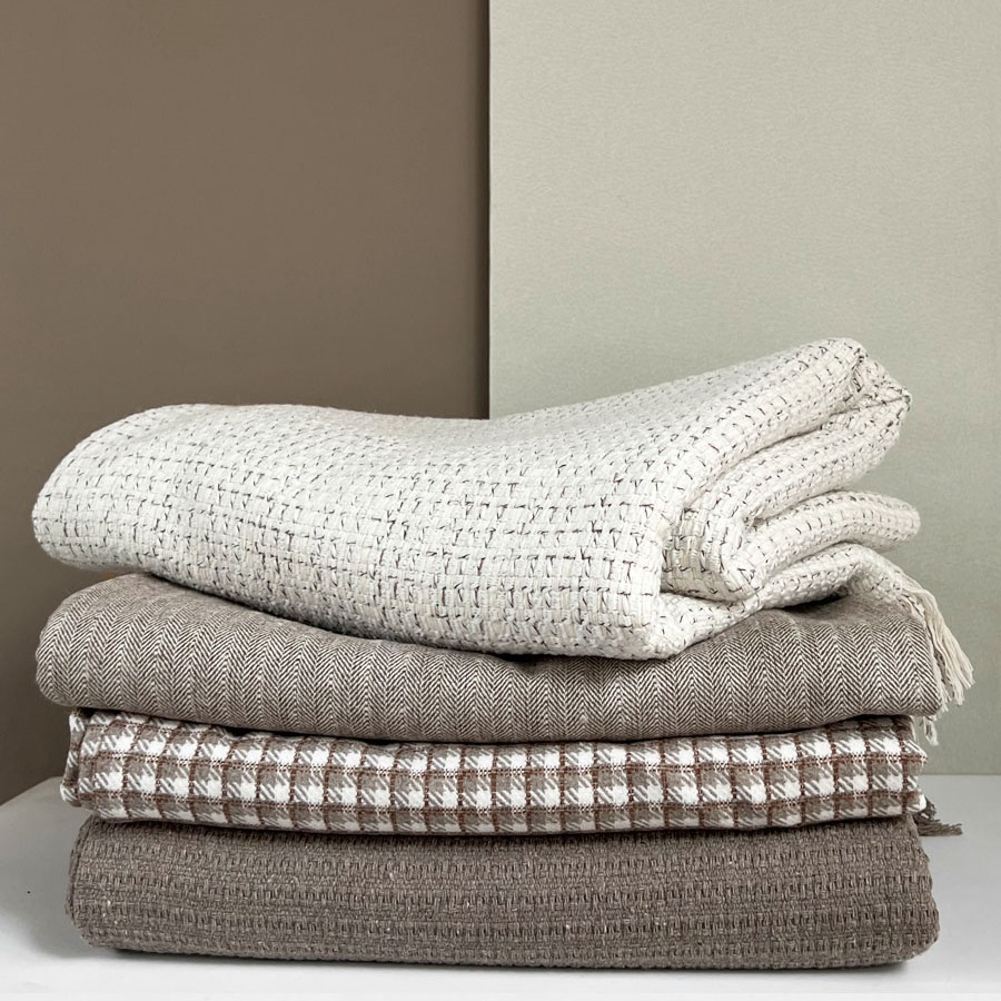 Colors: Beige, off-white, taupe herringbone, brown plaid, coffee-toned texture