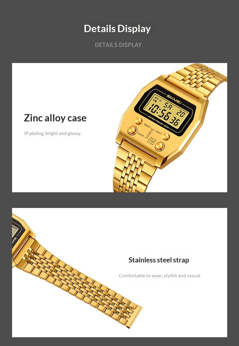 Product information:Color: Black, Gold, Silver Screen Size: Square Screen Suitable For: Universal Battery Capacity: Button Cell Battery Style: Retro Packing list: Digital watch x 1pc Product Imag...