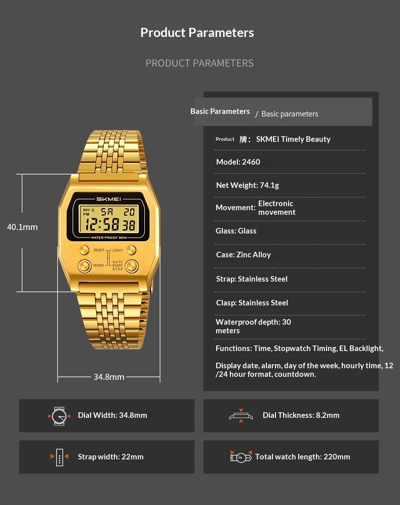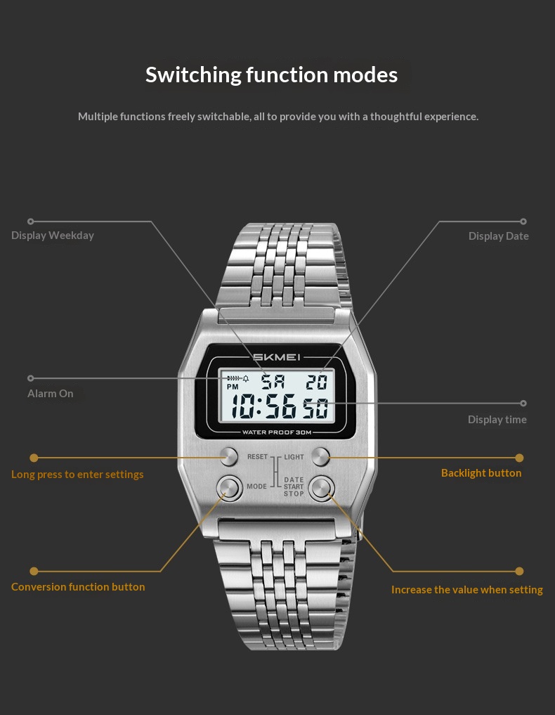 Retro Digital Minimalist Trendy Waterproof Mens Watch Multi-function Digital Watch For Men