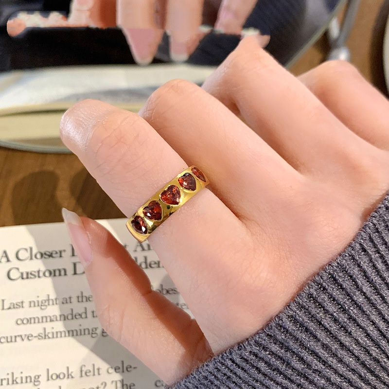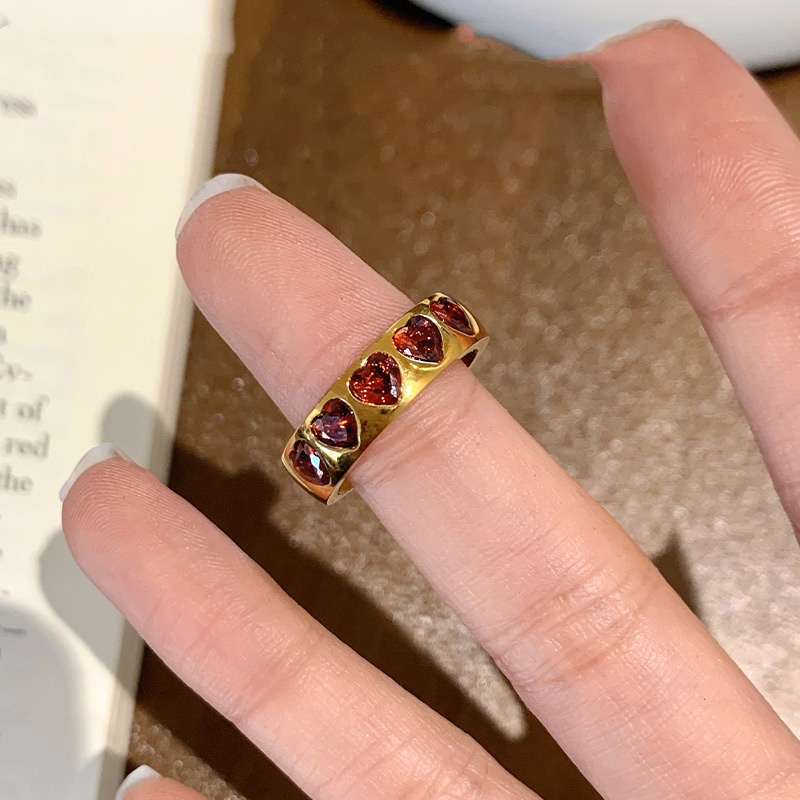Retro Heart-shaped Zircon Ring For Women A Niche Style