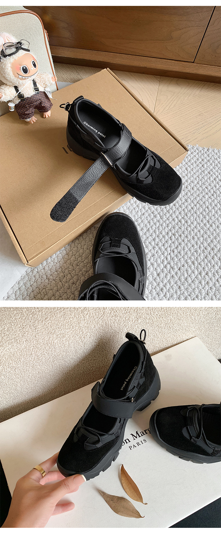 Retro Leather Chunky-soled Velcro Sneakers