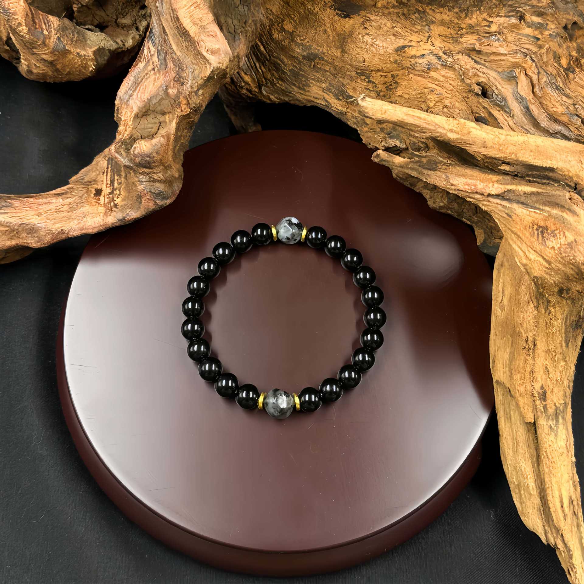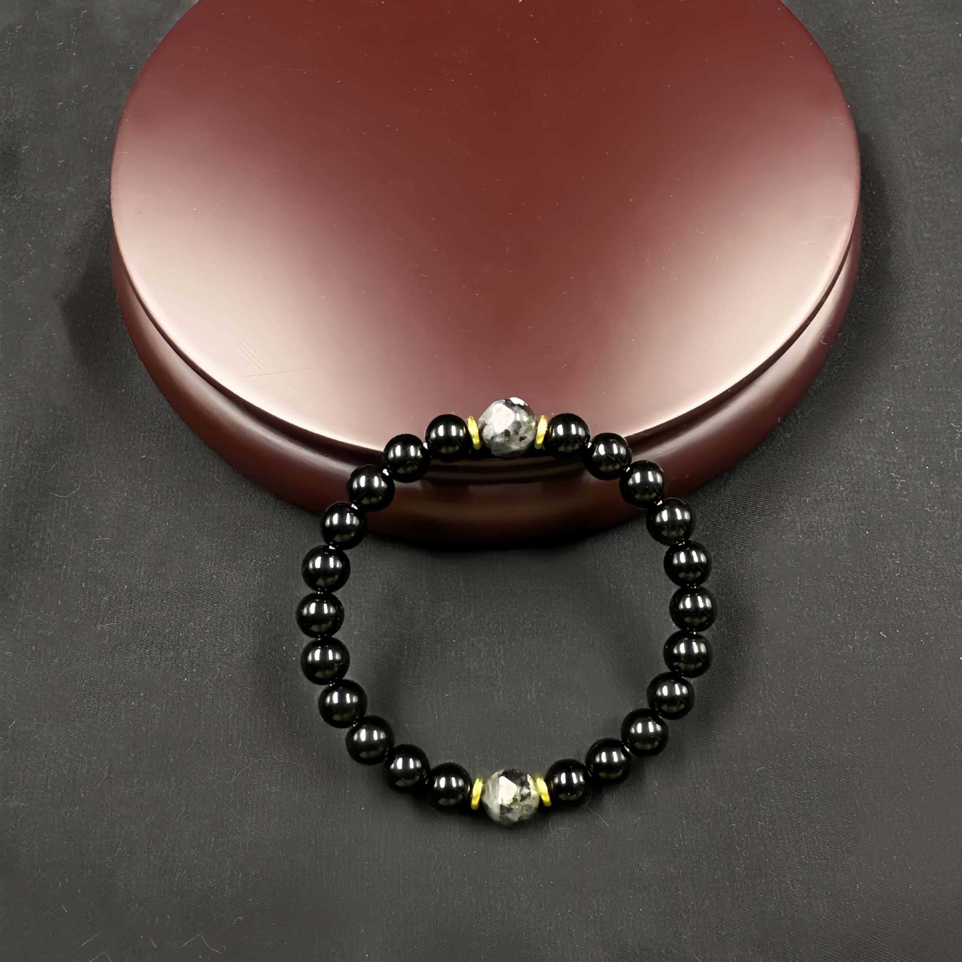 Retro Obsidian Elastic Handmade Mens Bracelet