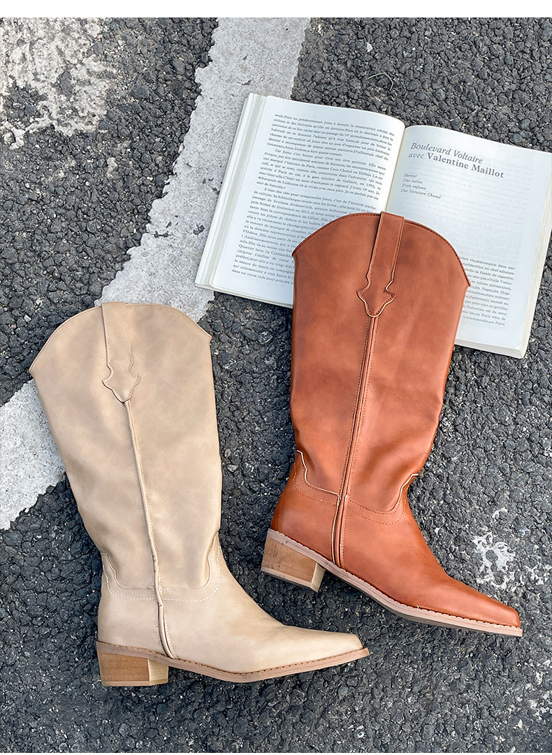 Retro Sophisticated Chunky-heel Pointed-toe Western Cowboy Boots