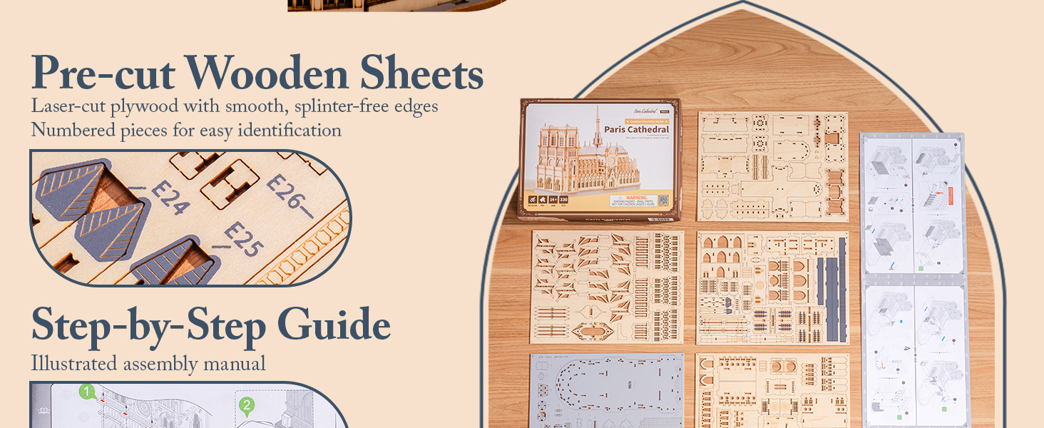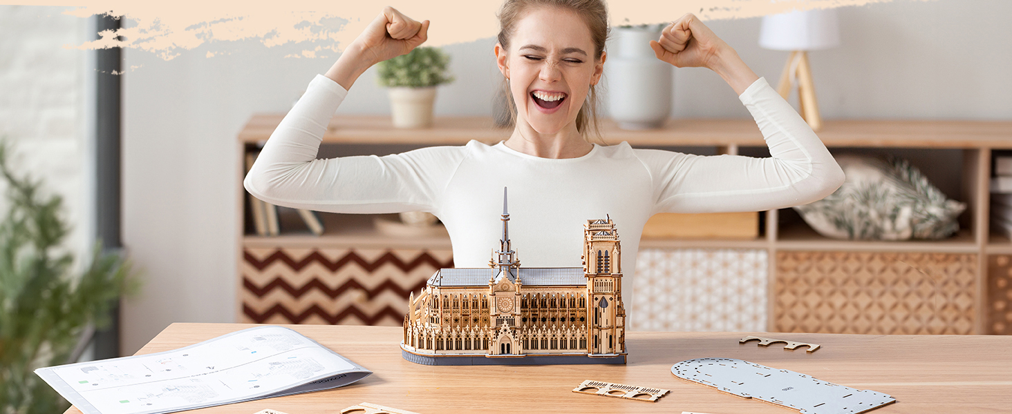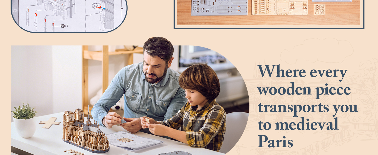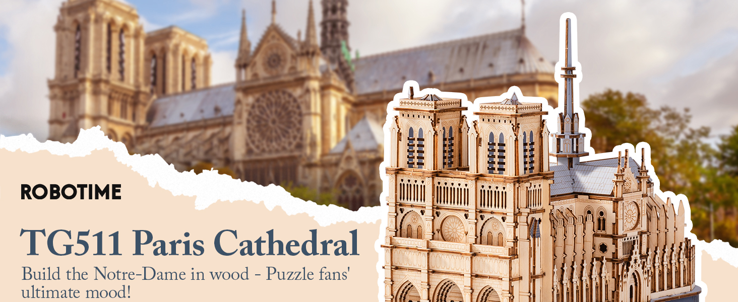 Brand: ROBOTIME Model: TG511 Puzzle Type: 3D Wooden Architectural Model, Three-Dimensional Puzzle Color: Natural Wood Color Theme: Paris Cathedral, Historical Building Material: Laser-cut Wood D...