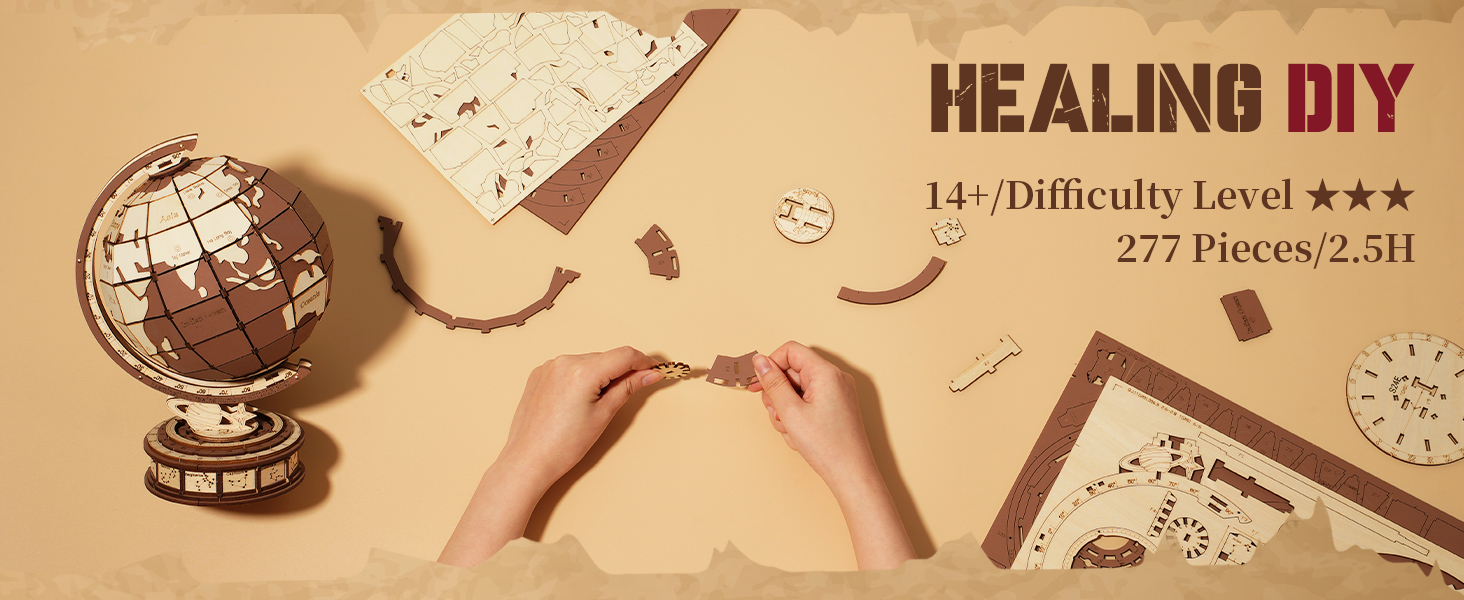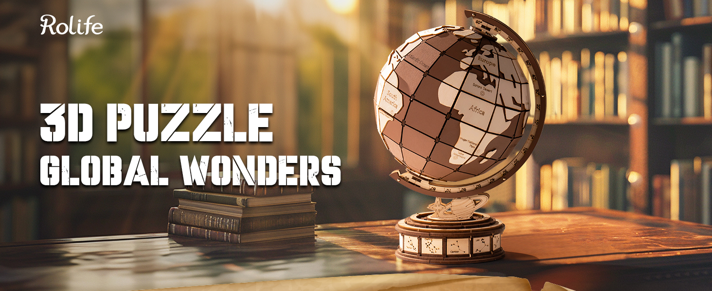 Brand: ROBOTIME Puzzle Type: 3D Puzzle, Globe, Educational Model Color: Natural Wood Theme: World, Geography, Astronomy Material: Wood Number of Pieces: 277 Assembly Time: Approx. 2.5 hours A...