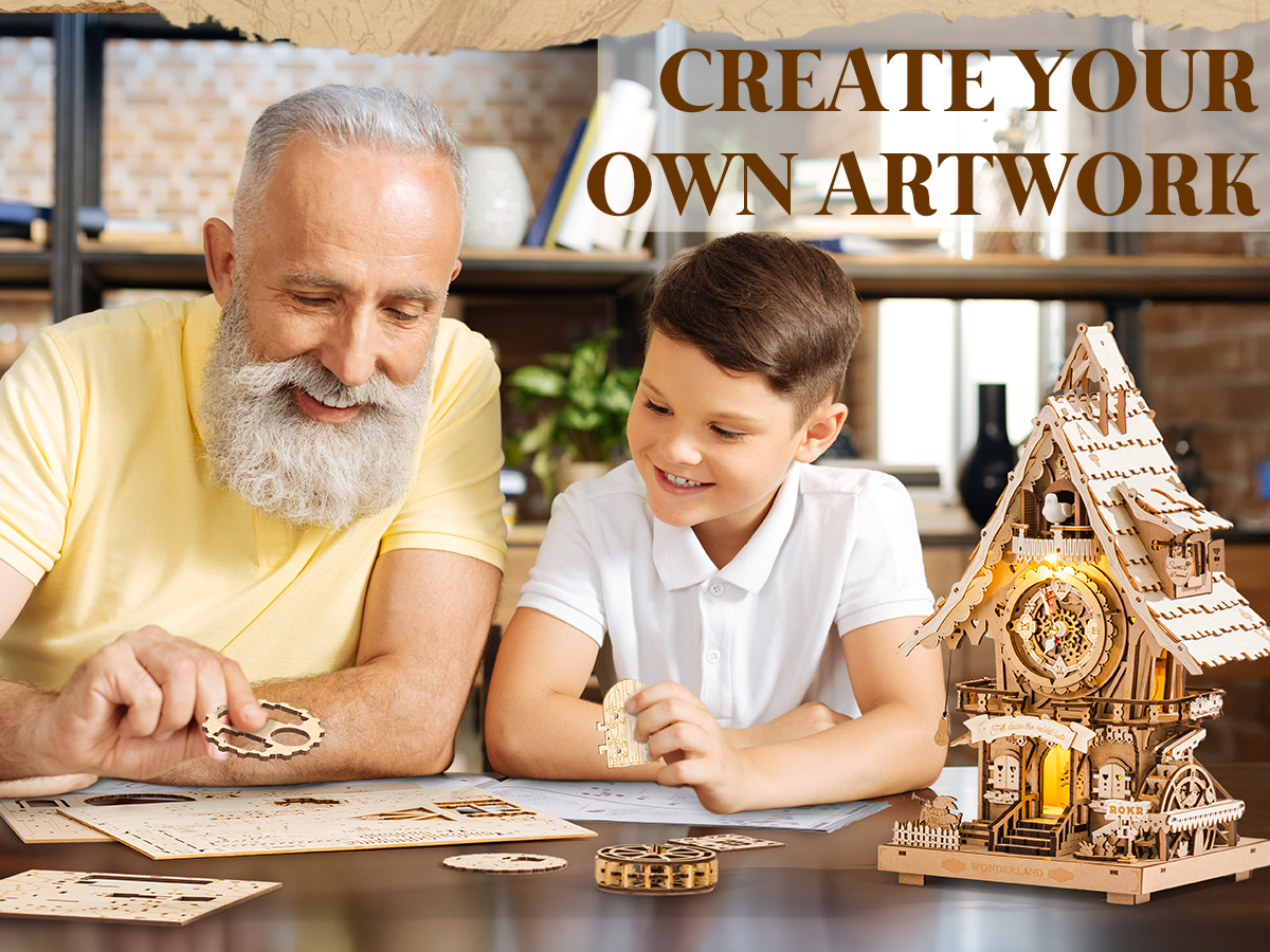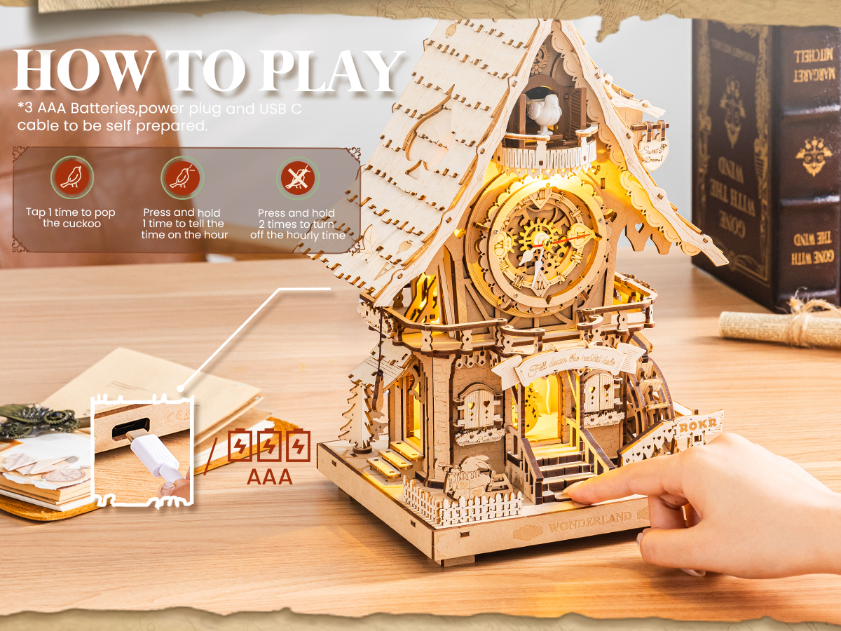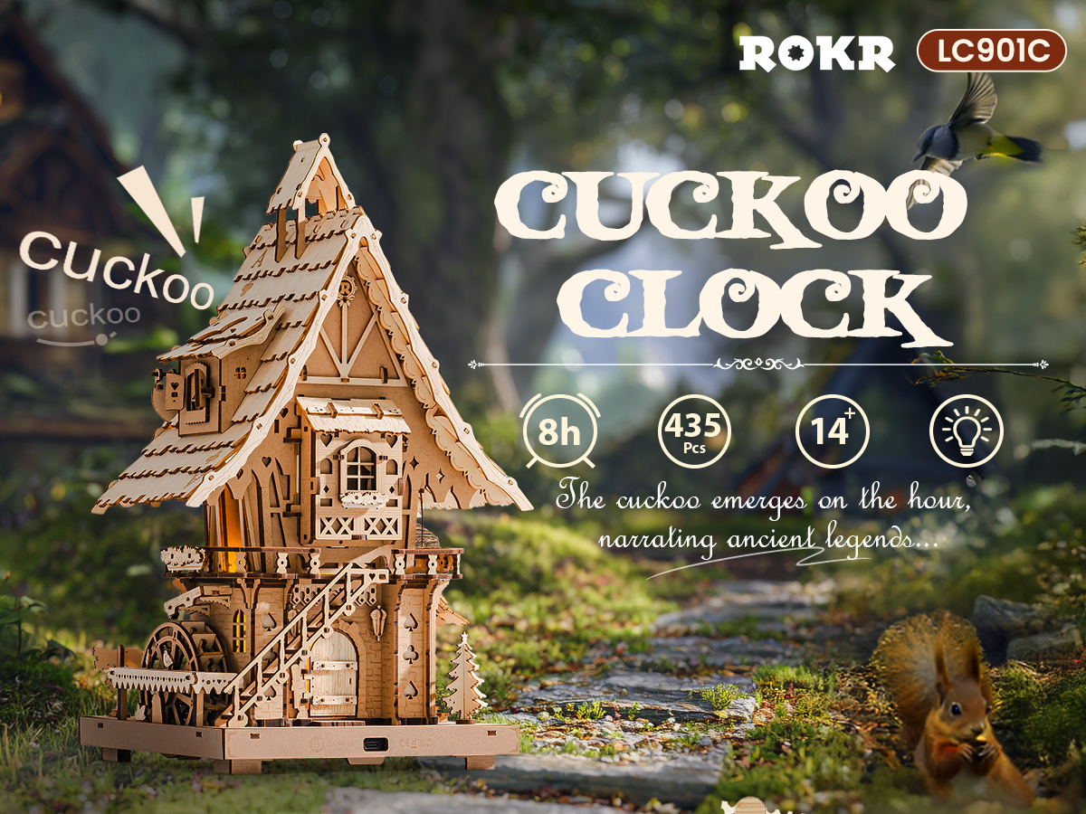 Brand: ROKR Puzzle Type: 3D puzzle, fully functional mechanical clock Color: Natural wood Theme: Cuckoo clock, treehouse, vintage, fantasy Material: Laser-cut wood Number of Pieces: 435 pieces...